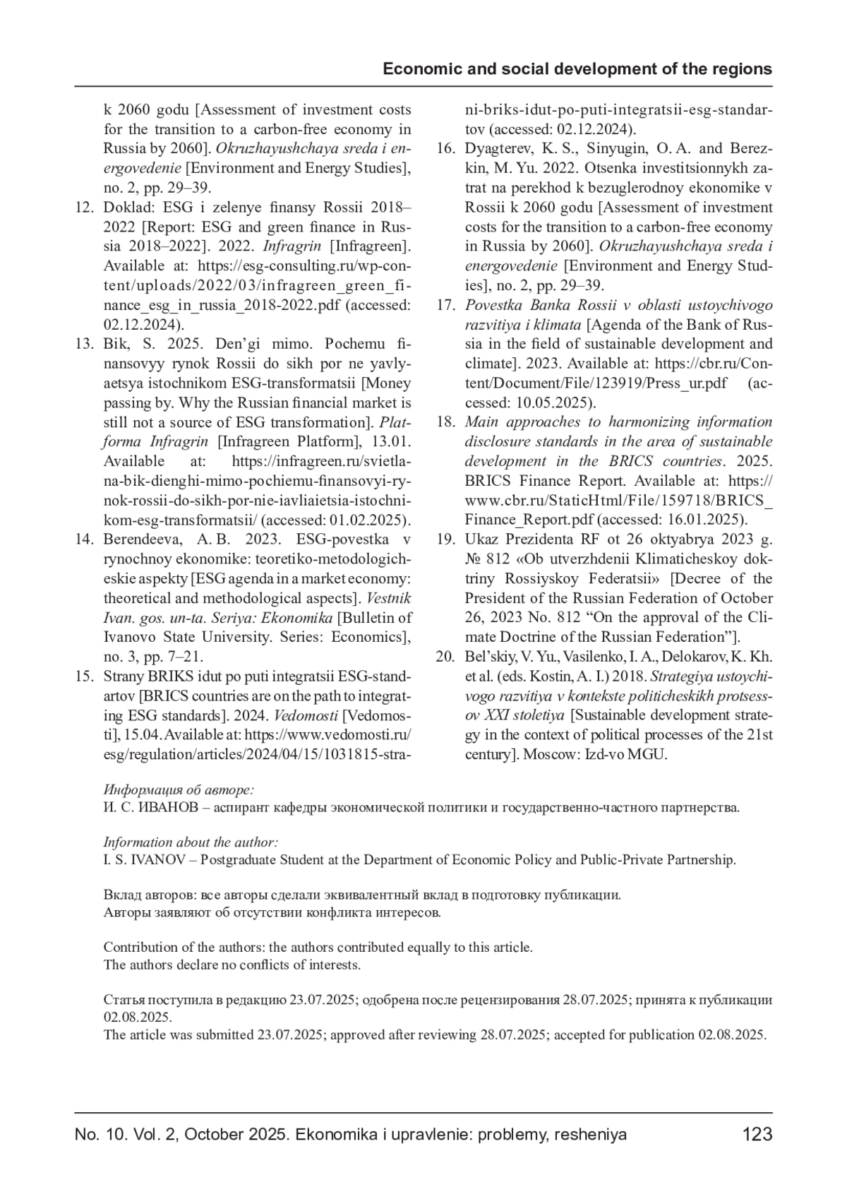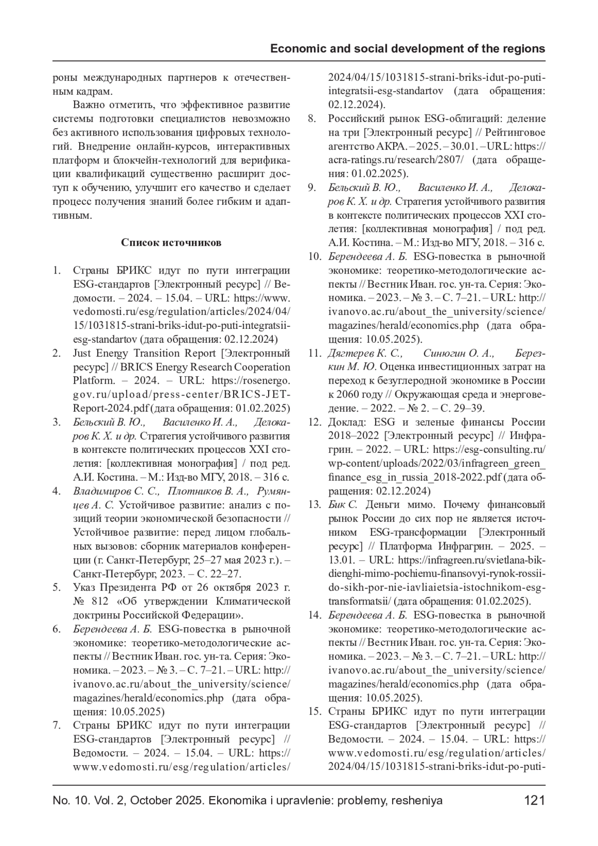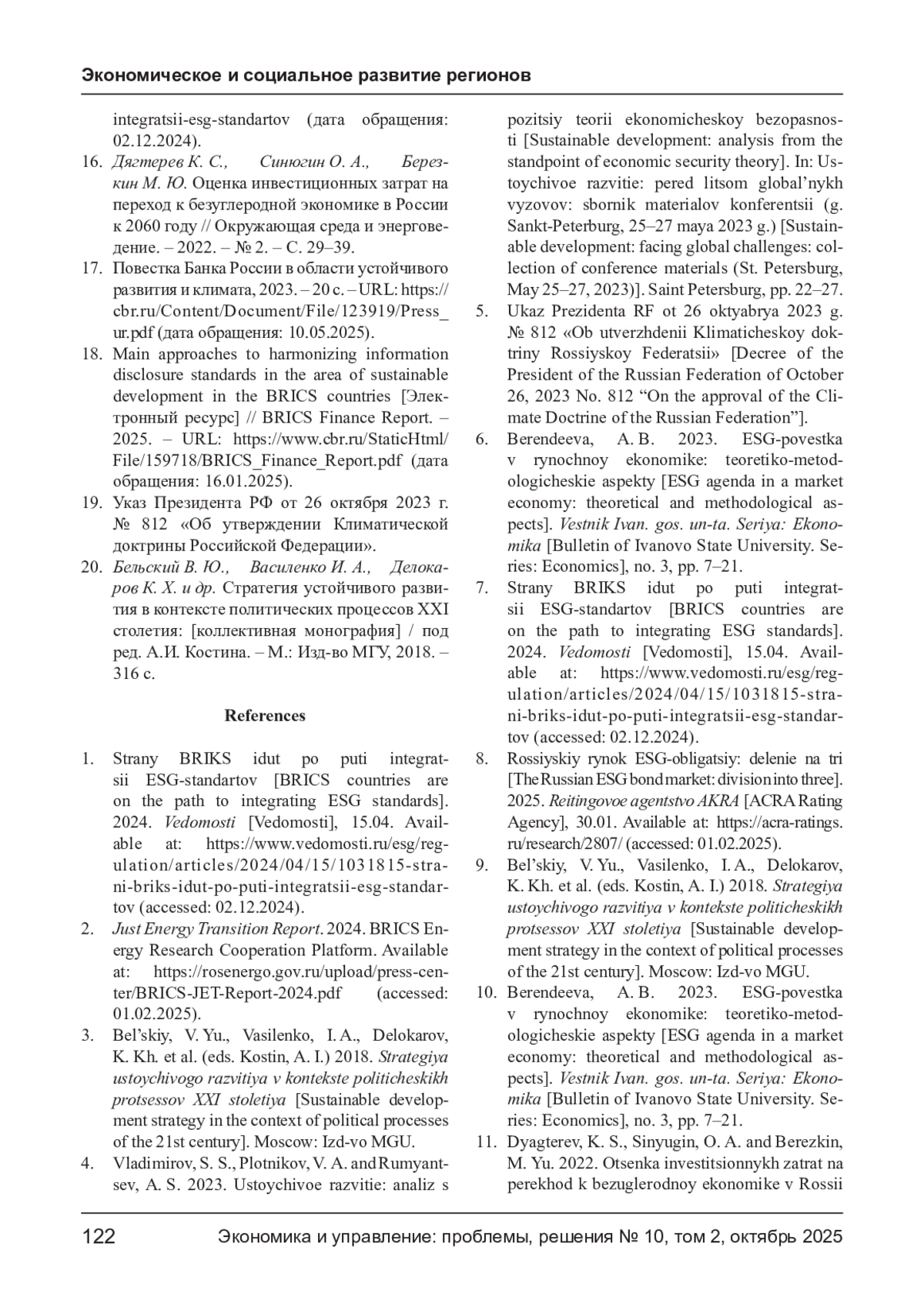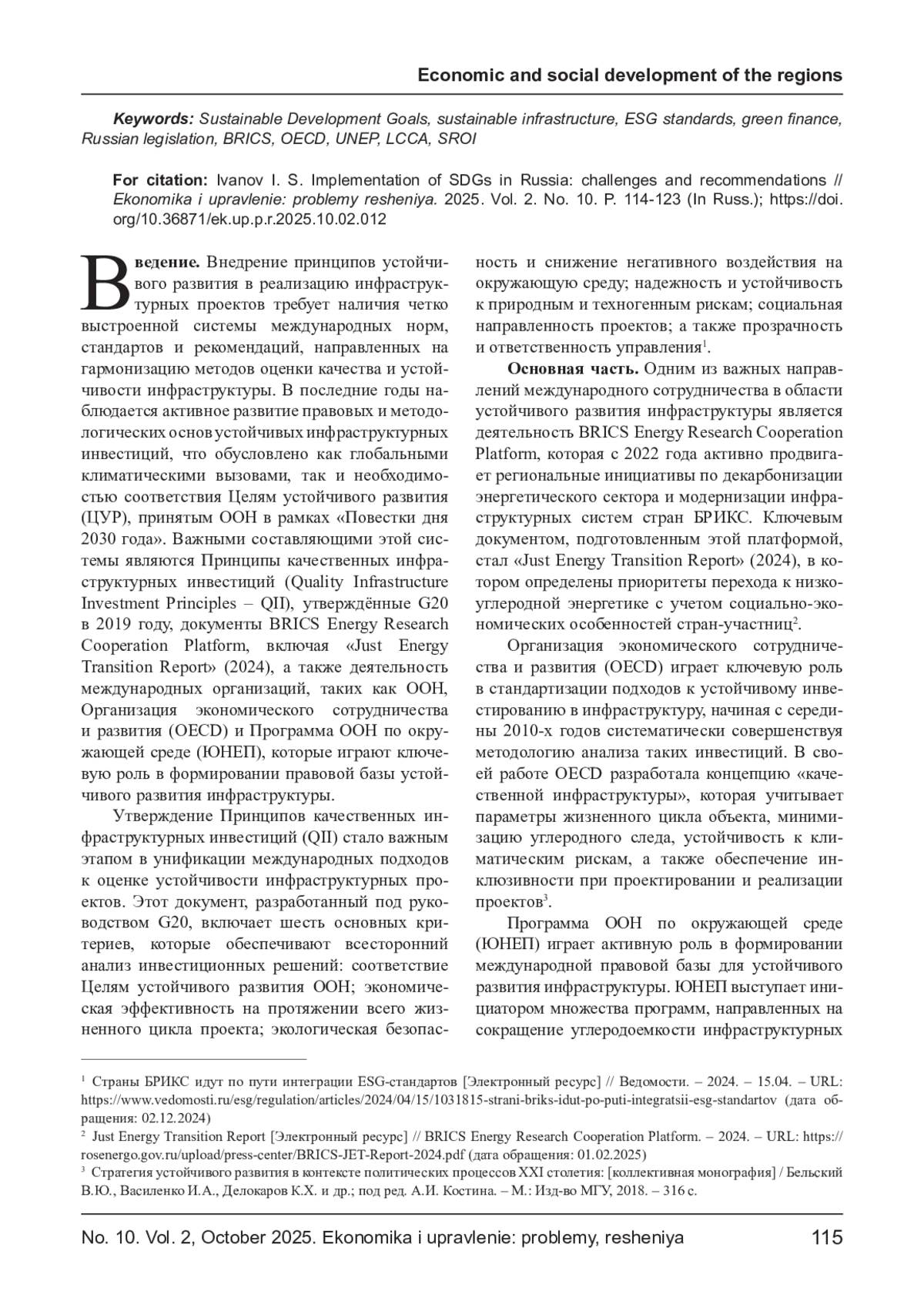 ИВАНОВ И. С. РЕАЛИЗАЦИЯ ЦЕЛЕЙ УСТОЙЧИВОГО РАЗВИТИЯ В РОССИЙСКОЙ ФЕДЕРАЦИИ: ВЫЗОВЫ И РЕКОМЕНДАЦИИ // ЭКОНОМИКА И УПРАВЛЕНИЕ: ПРОБЛЕМЫ, РЕШЕНИЯ. 2025. ТОМ 2 № 10