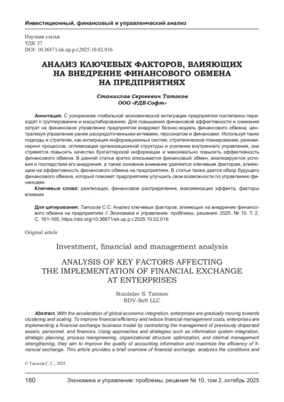 С ускорением глобальной экономической интеграции предприятия постепенно переходят к группированию и масштабированию. Для повышения финансовой эффективности и снижения затрат на финансовое управление предприятия внедряют бизнес-модель финансового обмена, централизуя управление ранее рассредоточенными активами, персоналом и финансами. Используя такие подходы и стратегии, как интеграция информационных систем, стратегическое планирование, реинжиниринг процессов, оптимизация организационной структуры и усиление внутреннего управления, они стремятся повысить качество бухгалтерской информации и максимально повысить эффективность финансового обмена. В данной статье кратко описывается финансовый обмен, анализируются условия и последствия его внедрения, а также основное внимание уделяется ключевым факторам, влияющим на эффективность финансового обмена на предприятиях. В статье также дается обзор будущего финансового обмена, который поможет предприятиям улучшить свои возможности по управлению финансами.