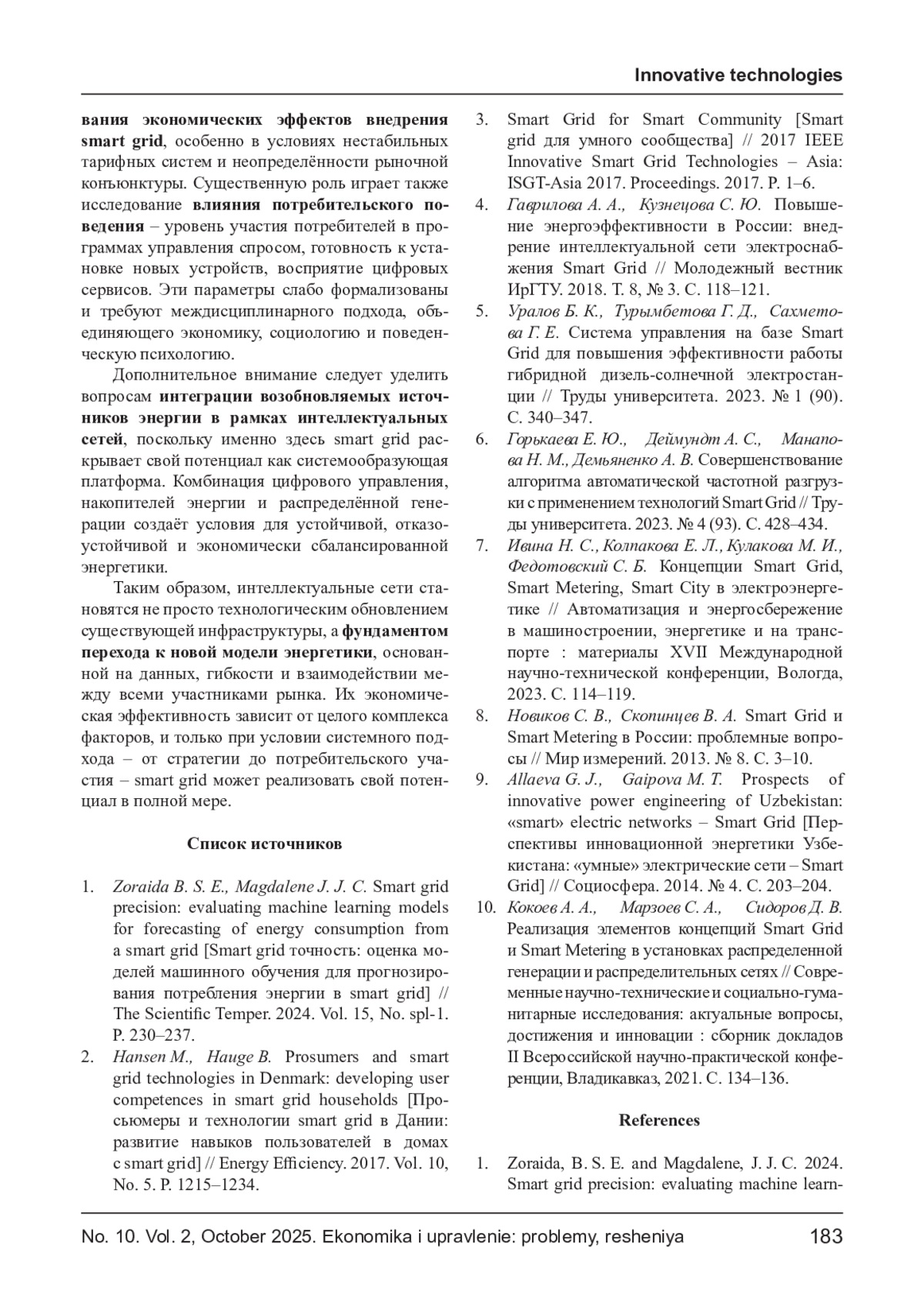 2. Hansen M., Hauge B. Prosumers and smart grid technologies in Denmark: developing user competences in smart grid households [Просьюмеры и технологии smart grid в Дании: развитие навыков пользователей в домах с smart grid] // Energy Efficiency. 2017. Vol. 10, No. 5. P. 1215-1234. EDN: SZPHIK
