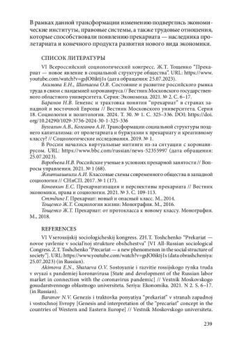 3. Баранов Н.В. Генезис и трактовка понятия “прекариат” в странах западной и во-сточной Европы // Вестник Московского университета. Серия 18. Социология и политология. 2024. Т. 30. № 1. С. 325-336. https://doi.org/10.24290/1029-3736-2024-30-1-325-336