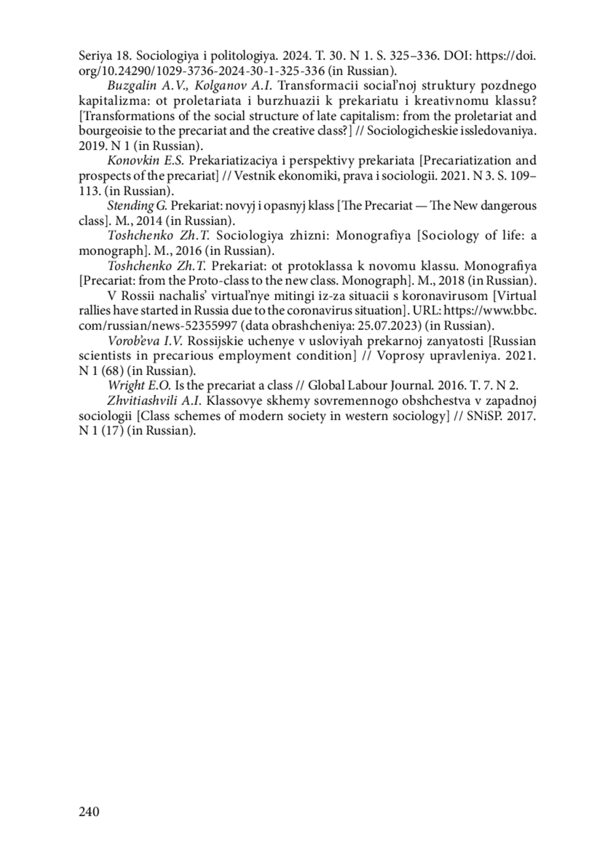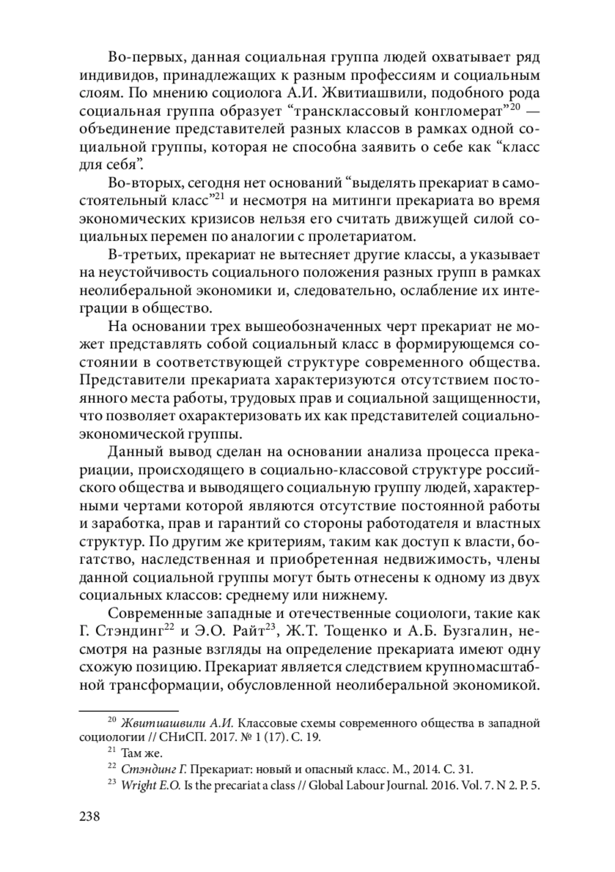 10. Тощенко Ж.Т. Прекариат: от протокласса к новому классу. Монография. М., 2018.
