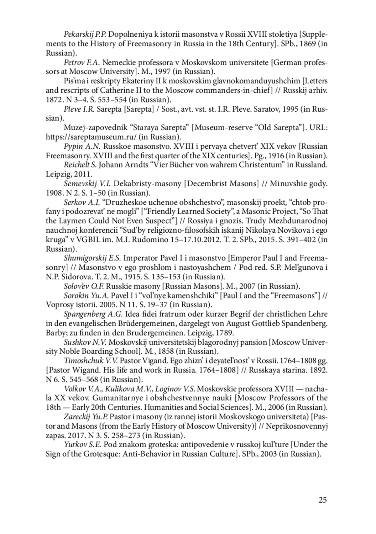 25. Сорокин Ю.А. Павел I и “вольные каменщики” // Вопросы истории. 2005. № 11. С. 19-37.