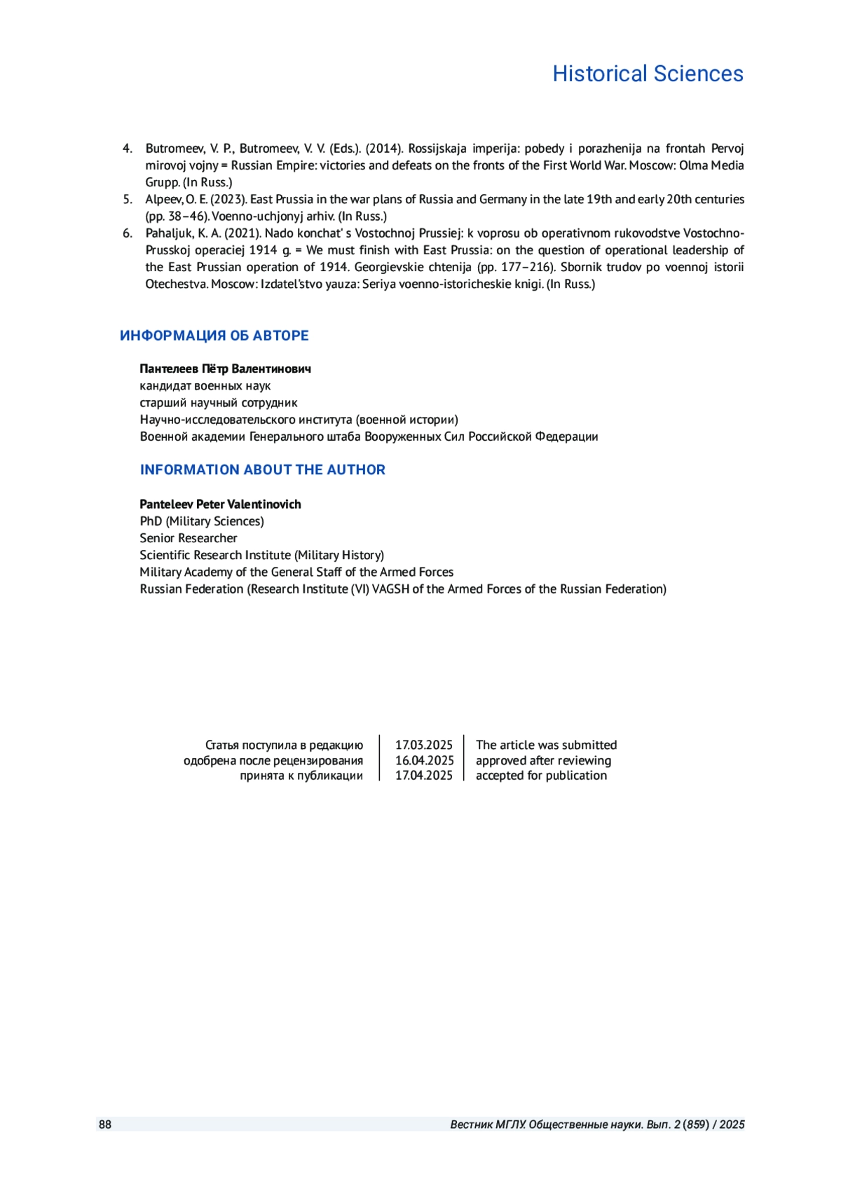 6. Пахалюк К. А. Надо кончать с Восточной Пруссией: к вопросу об оперативном руководстве Восточно-Прусской операцией 1914 года // Георгиевские чтения: сборник трудов по военной истории Отечества. М.: Яуза, 2021. С. 177-216. (Серия: Военно-исторические книги).