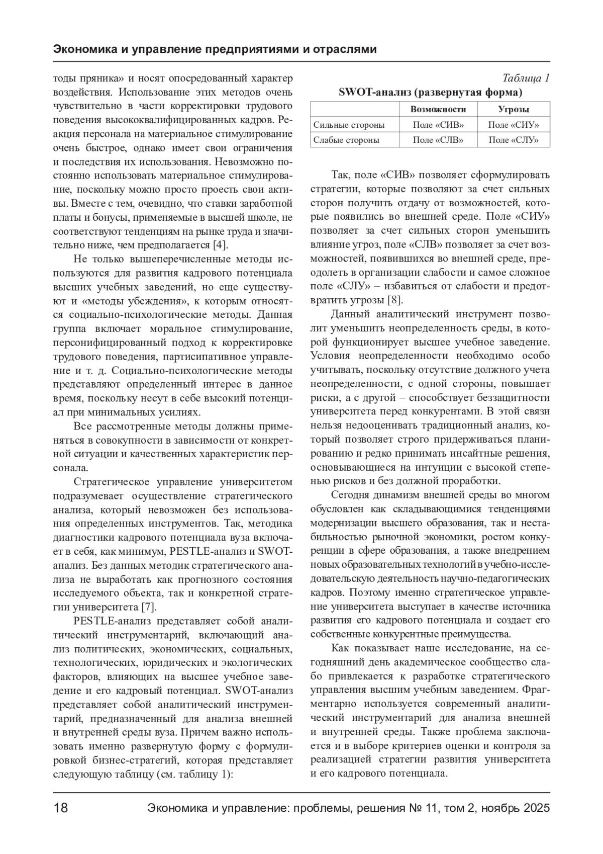 3. Бездудная А. Г., Иванов Е. Д. Управление кадровым потенциалом высшего учебного заведения // Лидерство и менеджмент. - 2025. - № 5. - Т. 12. - С. 1179-1193. EDN: LIEYFS