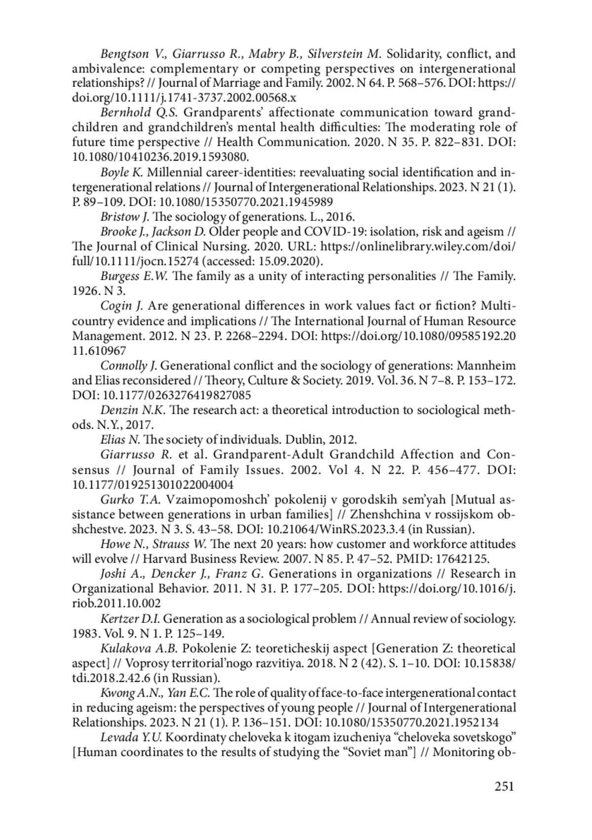 1. Гурко Т.А. Взаимопомощь поколений в городских семьях // Женщина в российском обществе. 2023. № 3. С. 43-58. https://doi.org/10.21064/WinRS.2023.3.4.