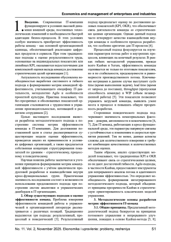 Статья: МЕТОДОЛОГИЧЕСКИЙ ПОДХОД К РАЗРАБОТКЕ МЕТРИК ЭФФЕКТИВНОСТИ КОМАНДЫ В IT-КОМПАНИЯХ (2025)