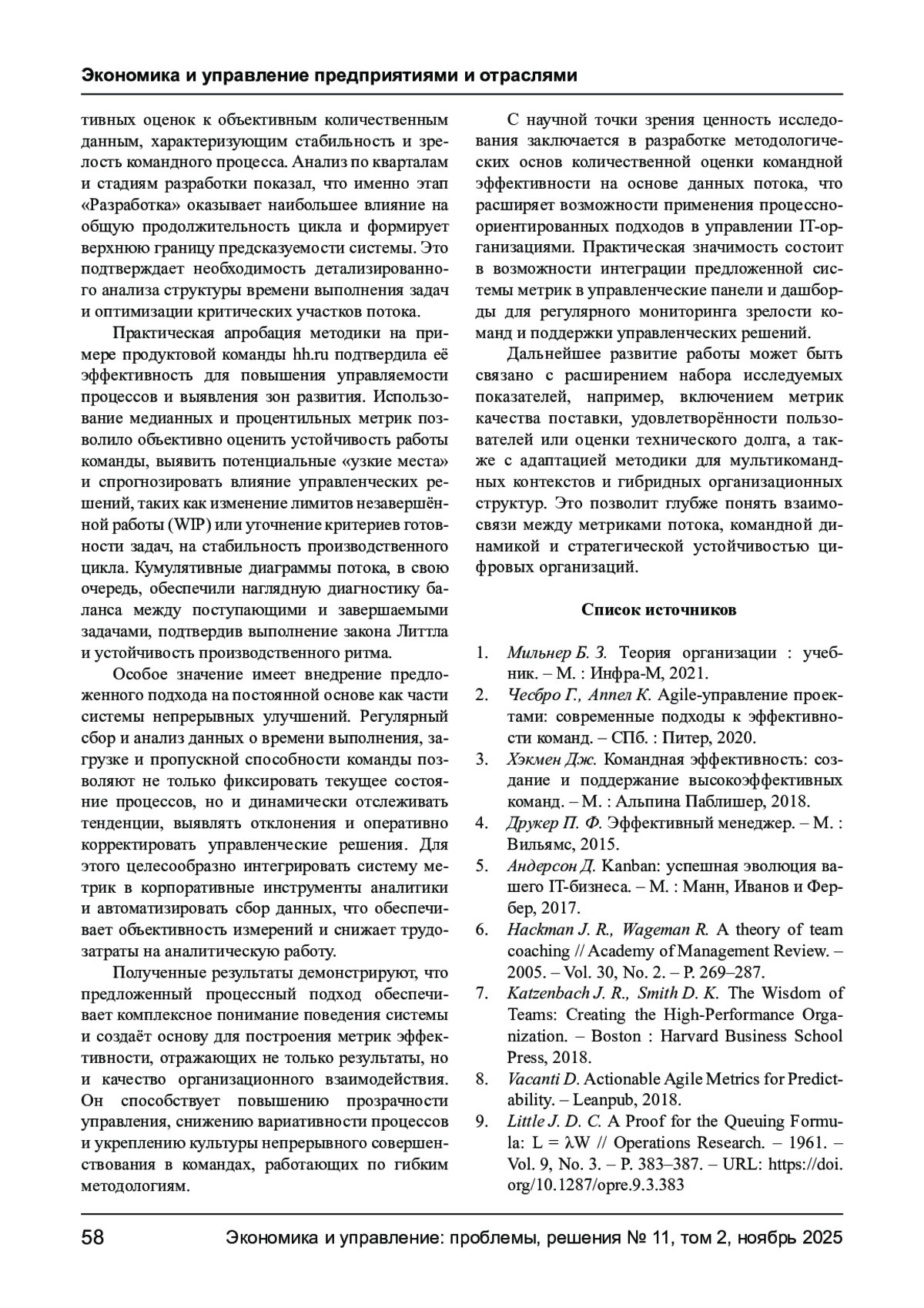 НИКОЛАЕВ Д. А. МЕТОДОЛОГИЧЕСКИЙ ПОДХОД К РАЗРАБОТКЕ МЕТРИК ЭФФЕКТИВНОСТИ КОМАНДЫ В IT-КОМПАНИЯХ // ЭКОНОМИКА И УПРАВЛЕНИЕ: ПРОБЛЕМЫ, РЕШЕНИЯ. 2025. ТОМ 2 № 11