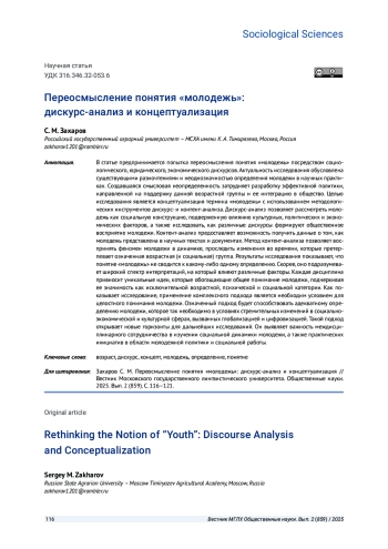 Статья: ПЕРЕОСМЫСЛЕНИЕ ПОНЯТИЯ «МОЛОДЕЖЬ»: ДИСКУРС-АНАЛИЗ И КОНЦЕПТУАЛИЗАЦИЯ (2025)