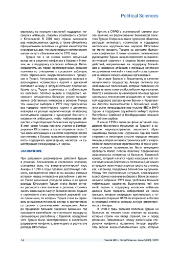 7. Gangloff S. Turkish policy towards the conflict in Kosovo: the preeminence of national political interests // Balkanologie. 2004. Vol. VIII. No 1. P. 105-122.