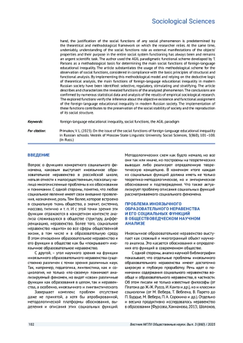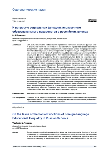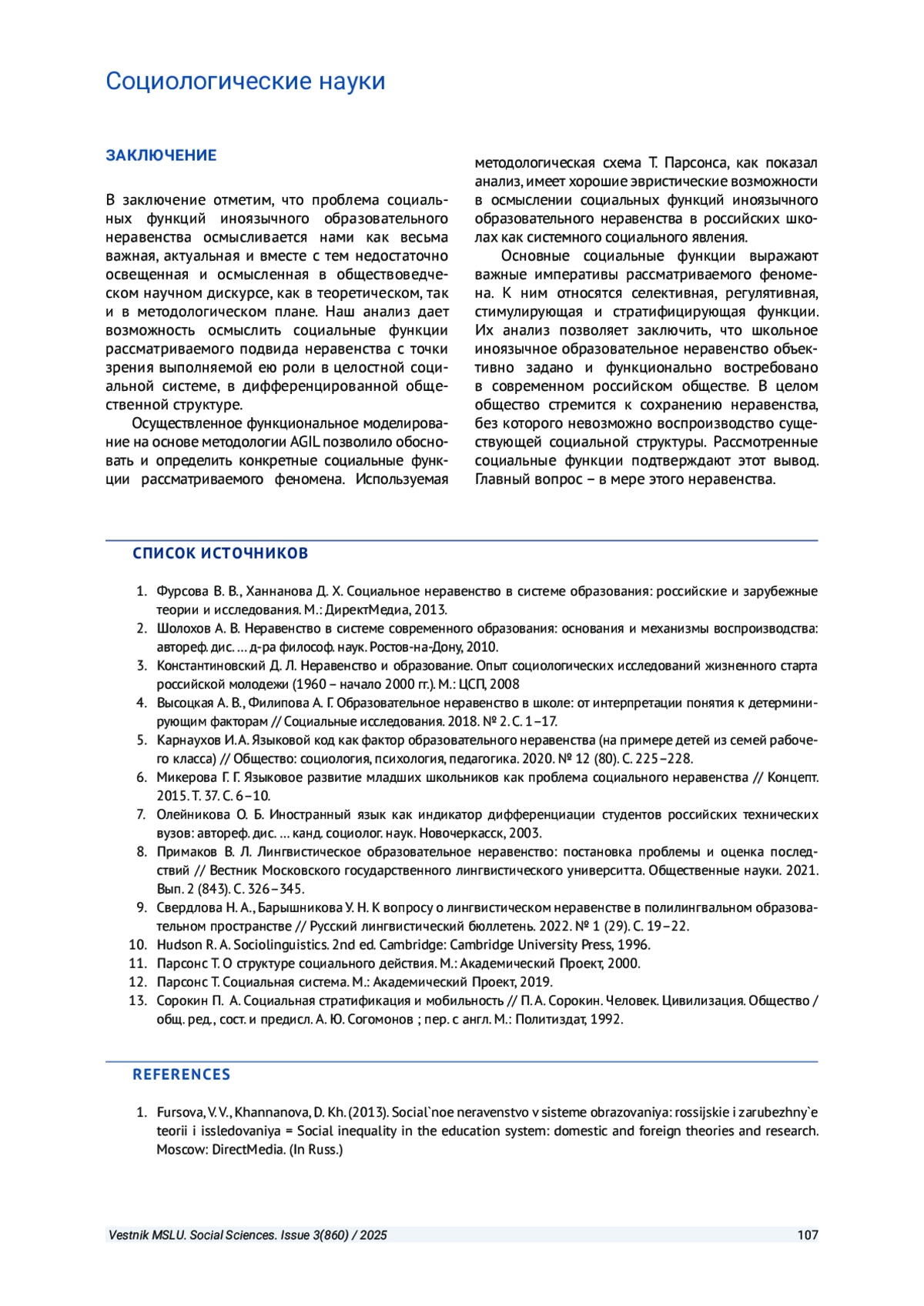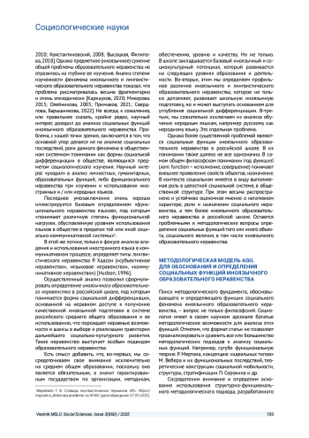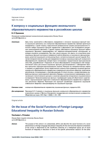 Статья: К ВОПРОСУ О СОЦИАЛЬНЫХ ФУНКЦИЯХ ИНОЯЗЫЧНОГО ОБРАЗОВАТЕЛЬНОГО НЕРАВЕНСТВА В РОССИЙСКИХ ШКОЛАХ (2025)