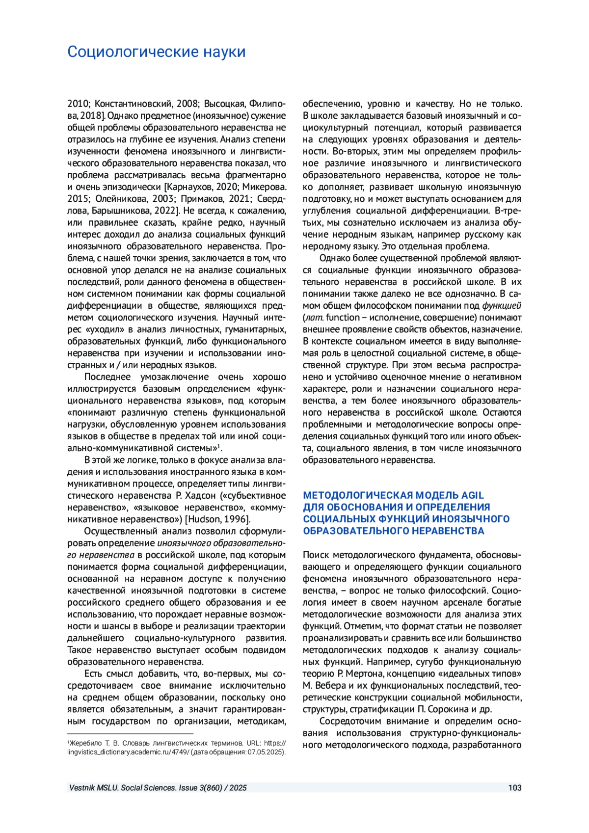 Ключевые фразы: иноязычное образовательное неравенство, социальные функции, парадигма agil