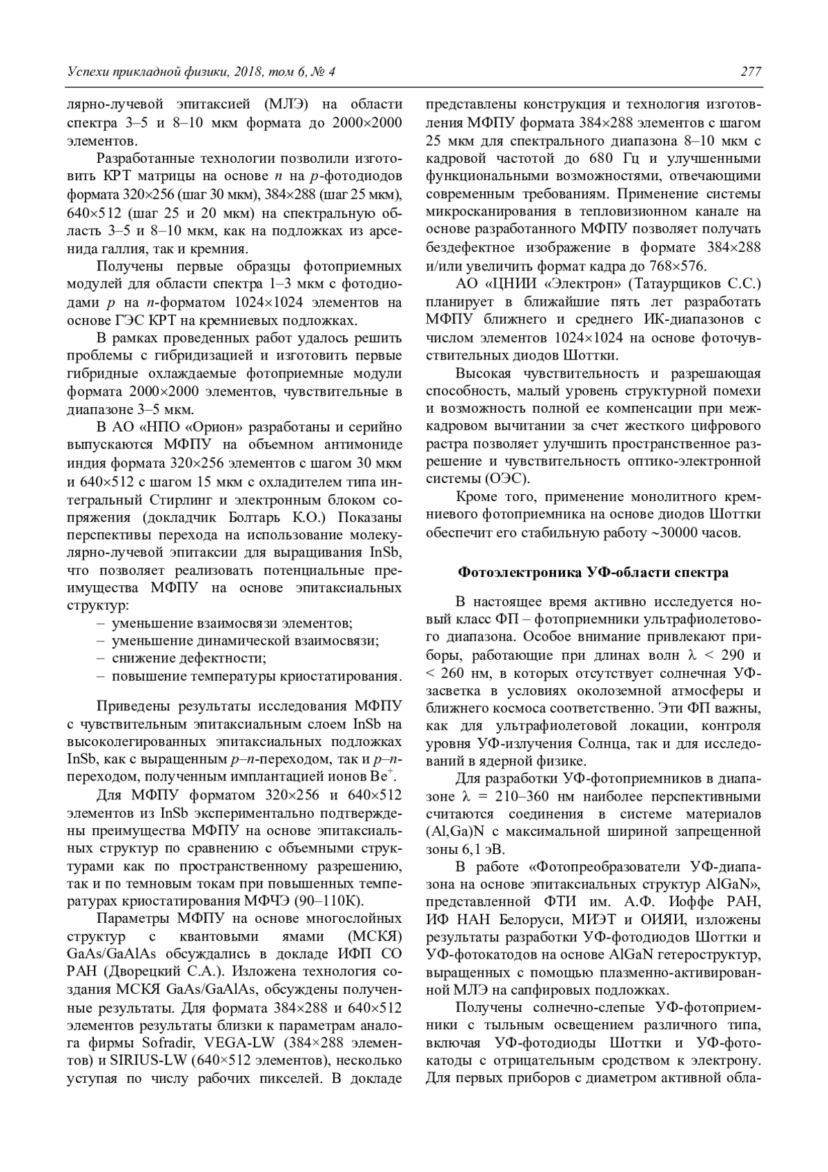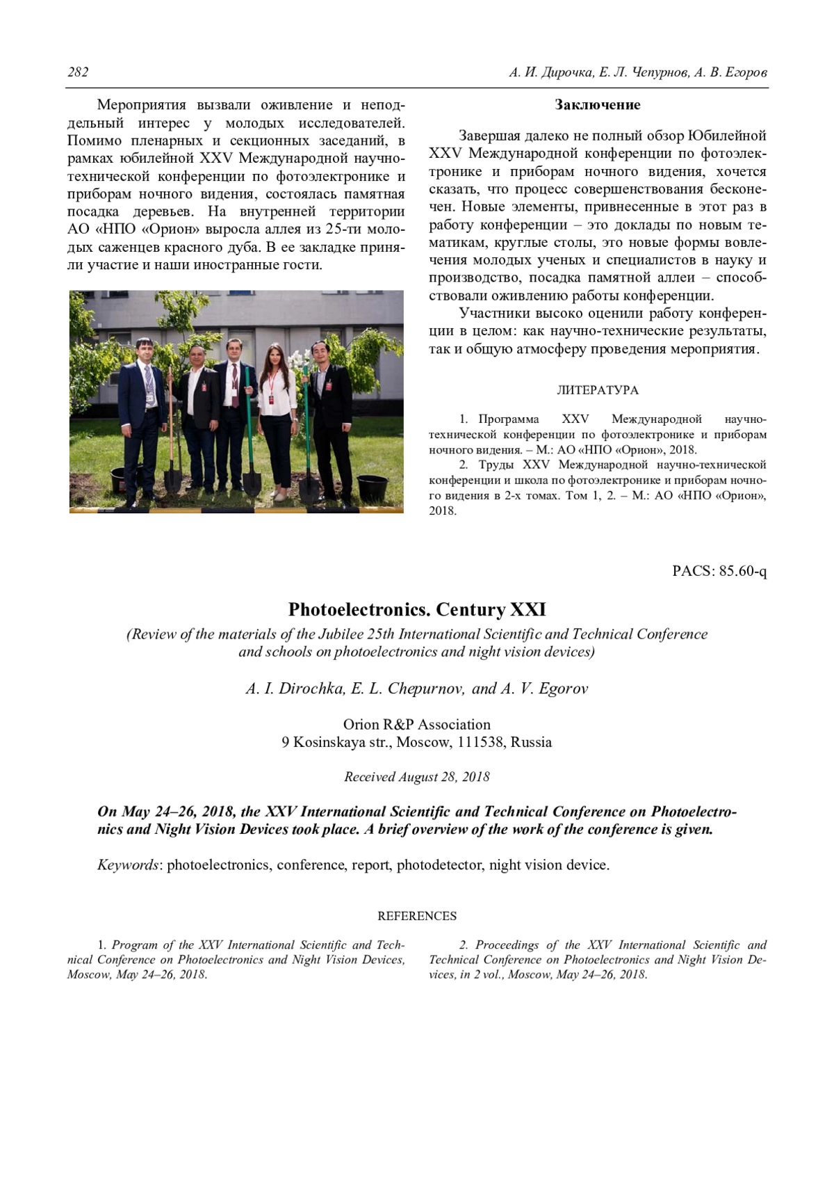 A. I. Dirochka, E. L. Chepurnov, and A. V. Egorov Photoelectronics. Century XXI (Review of the materials of the Jubilee 25th International Scientific and Technical Conference and schools on photoelectronics and night vision devices) 275