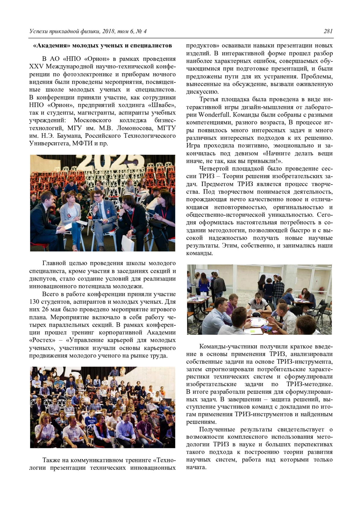 Дирочка А. И., Чепурнов Е. Л., Егоров А. В. Фотоэлектроника. Век XXI (Обзор материалов Юбилейной XXV Международной научно-технической конференции и школы по фотоэлектронике и приборам ночного видения) 275