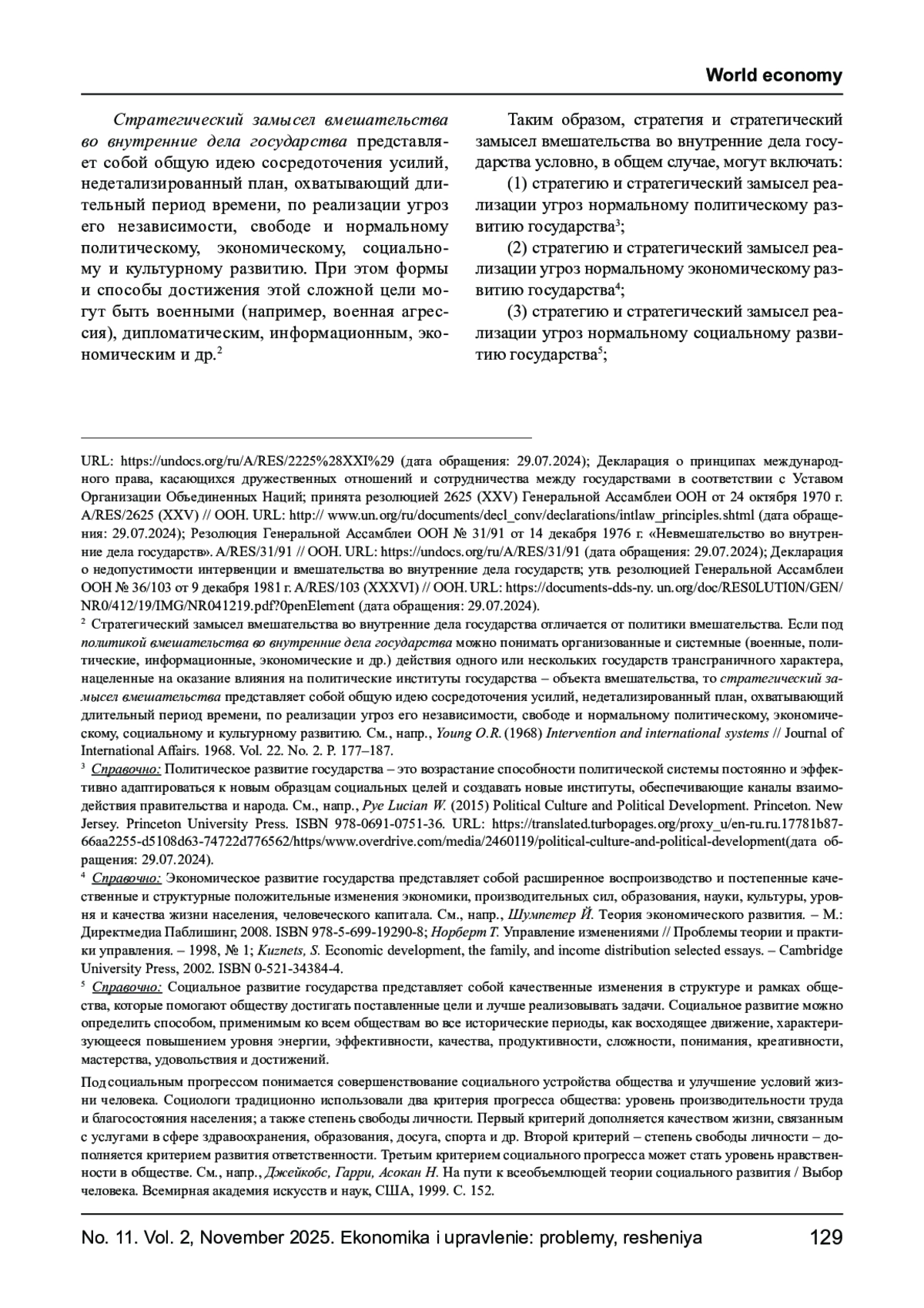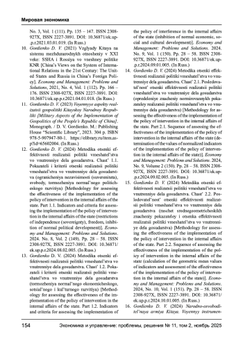 6. Гордиенко Д. В. Методика оценки эффективности реализации политики вмешательства во внутренние дела государства. Часть 1.2. Показатели и критерии оценки реализации политики вмешательства во внутренние дела государства (торможения нормального экономического, социального и культурного развития) // Экономика и управление: проблемы и решения, 2024, № 9, том 1 (150) - С. 28 - 58. ISSN 2308-927X, ISSN 2227-3891. DOI: 10.36871/ek.up.p.r.2024.09.01.005