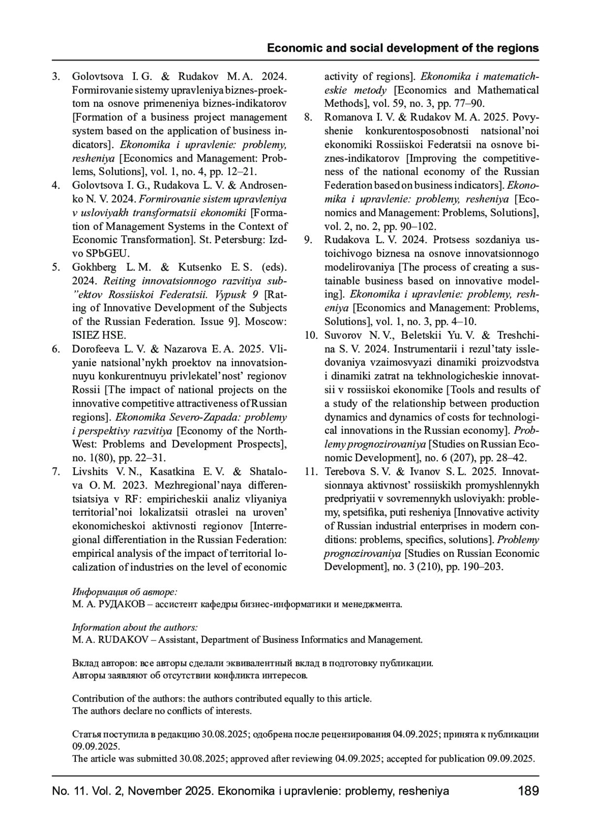 8. Романова И. В., Рудаков М. А. Повышение конкурентоспособности национальной экономики Российской Федерации на основе бизнес-индикаторов // Экономика и управление: проблемы, решения. - 2025. - Т. 2, № 2. - С. 90-102. EDN: ZAWFFN