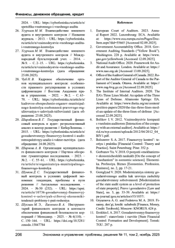 5. The Institute of Internal Auditors. The IIA’s Three Lines Model: An update of the Three Lines of Defense. - Altamonte Springs: IIA, 2020. - URL: https://www.theiia.org/en/content/position-papers/2020/the-iias-three-linesmodel-an-update-of-the-three-lines-of-defense (дата обращения: 22.09.2025).