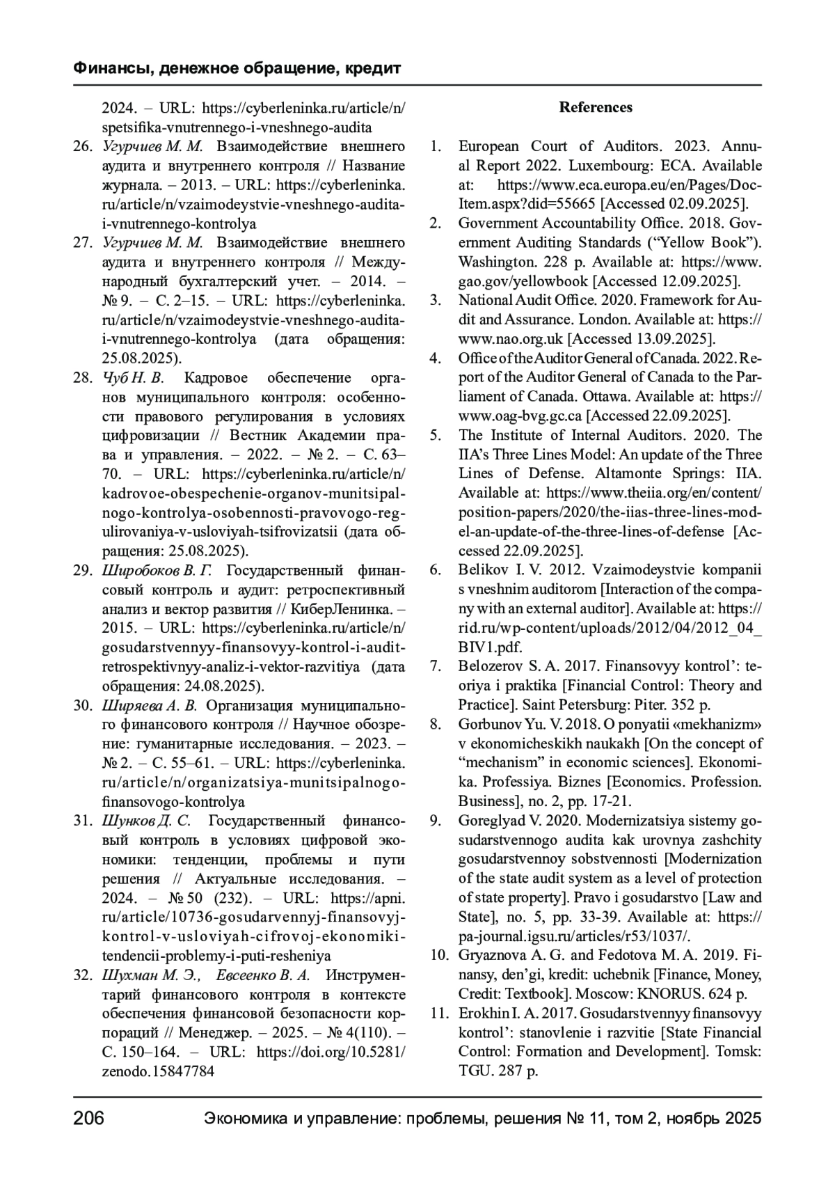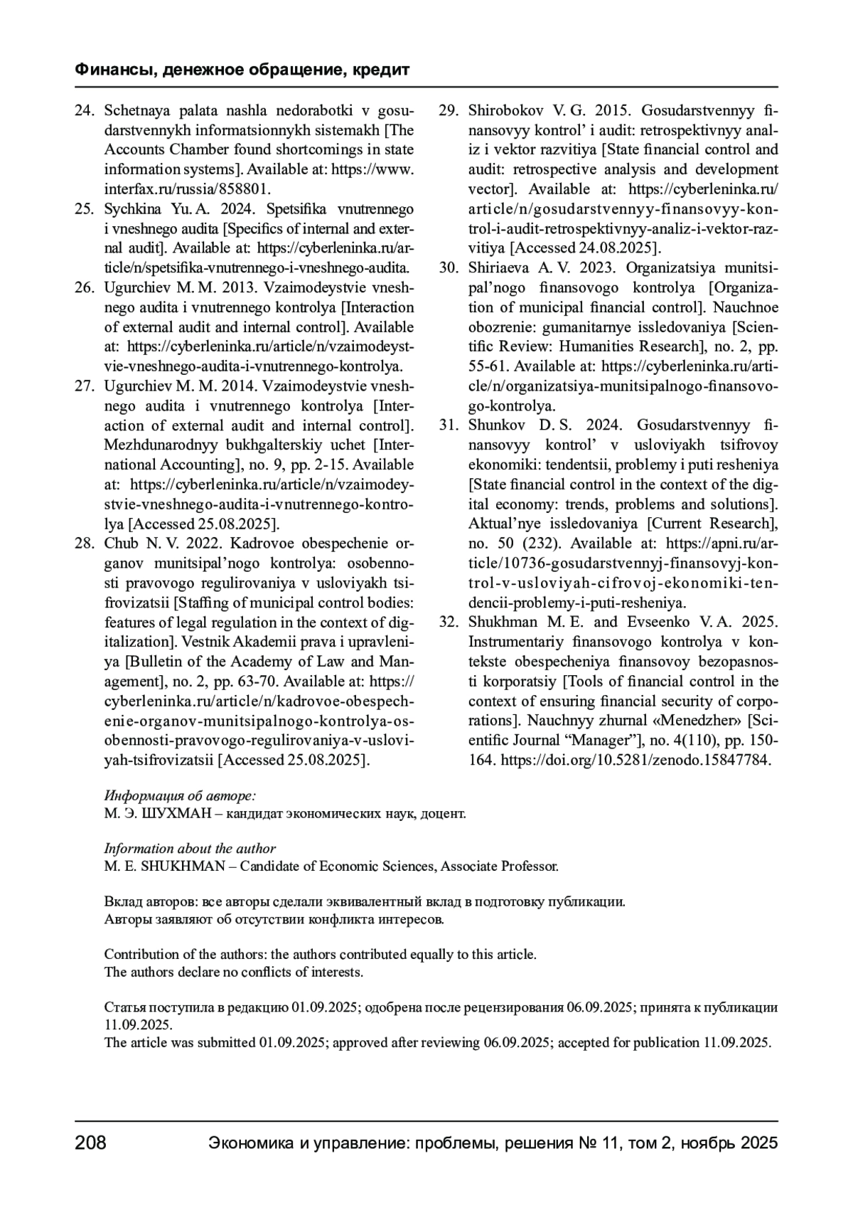 32. Шухман М. Э., Евсеенко В. А. Инструментарий финансового контроля в контексте обеспечения финансовой безопасности корпораций // Менеджер. - 2025. - № 4(110). - С. 150-164. -. DOI: 10.5281/zenodo.15847784