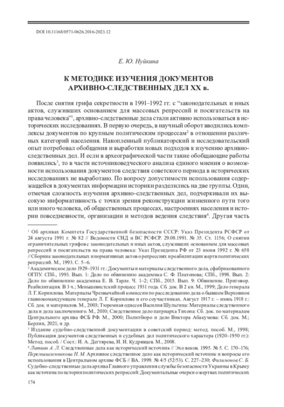 26. Нуйкина Е.Ю. Архивно-следственные дела по обвинению духовенства Русской православной церкви (1917-1930-е гг.): Источниковедческое исследование / Отв. ред. Л.А. Лыкова. М., 2024. EDN: AWYWVY