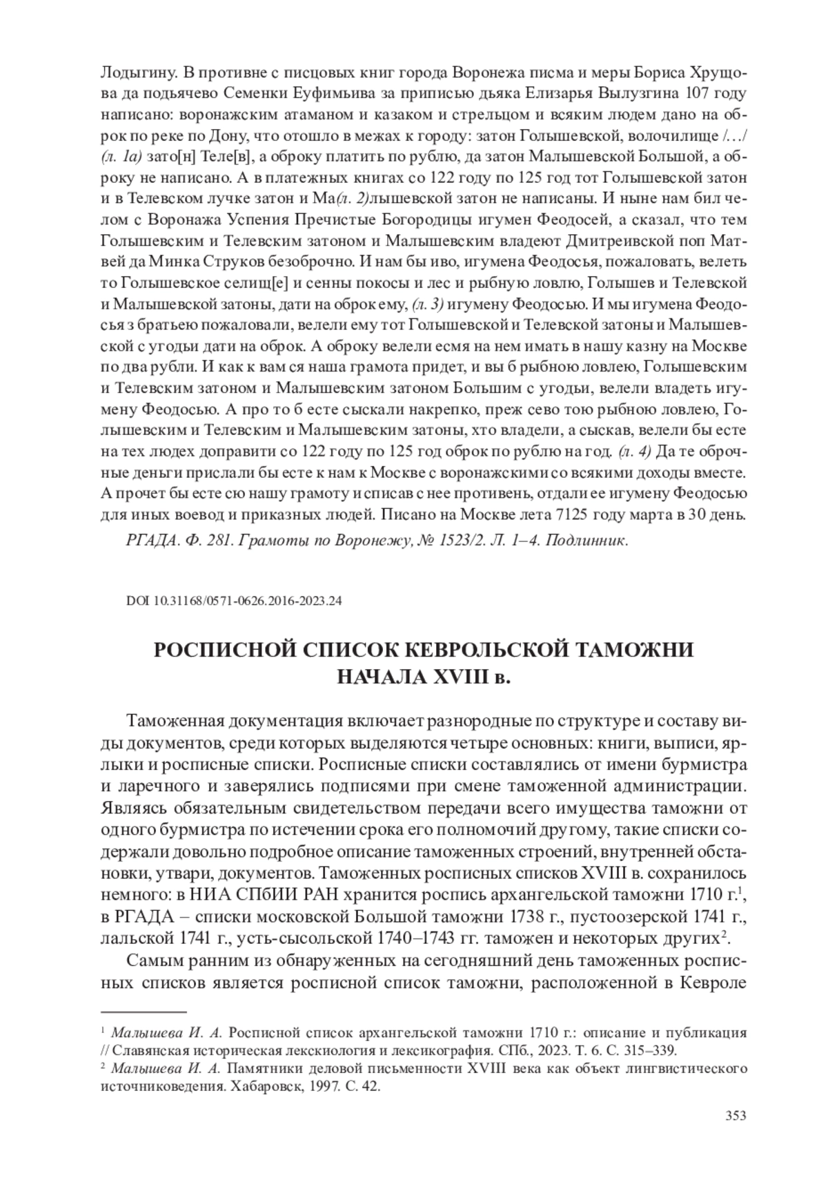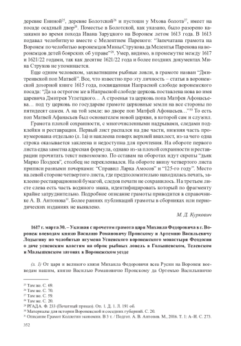 КУРКОВИЧ М.Д. МАЛОИЗВЕСТНАЯ ГРАМОТА ВОРОНЕЖСКОГО УСПЕНСКОГО МОНАСТЫРЯ 1617 Г. (К ВОПРОСУ О ДАТИРОВКЕ ОБРАЗОВАНИЯ ВОРОНЕЖСКОГО УЕЗДА) // АРХЕОГРАФИЧЕСКИЙ ЕЖЕГОДНИК. 2024. ТОМ 1