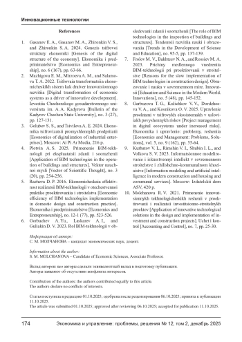 10. Молчанова Р. В. Применение инновационных технологических решений в проектировании и реализации инвестиционно-строительных проектов // Учет и контроль. - 2021. - № 7. - С. 25-30.