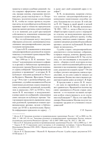 10. Малов В. Н. Франция в России: Судьбы старых документов XVI-XVIII веков. С. 8.