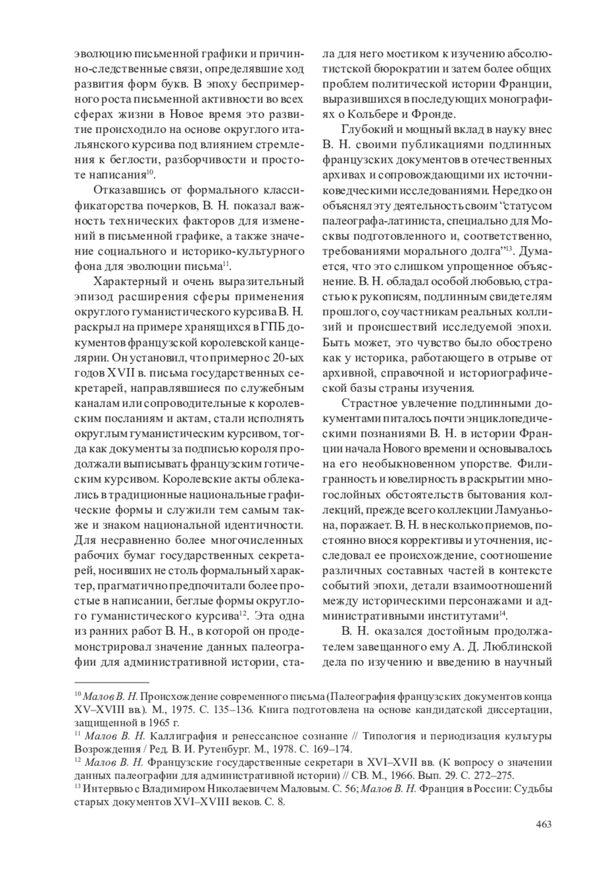 Владимир Николаевич Малов – выдающийся специалист по истории Франции раннего Нового времени, источниковедению, археографии и палеографии рукописей латинского алфавита. Его уход 24 января 2019 г. является невосполнимой утратой для коллег и науки.