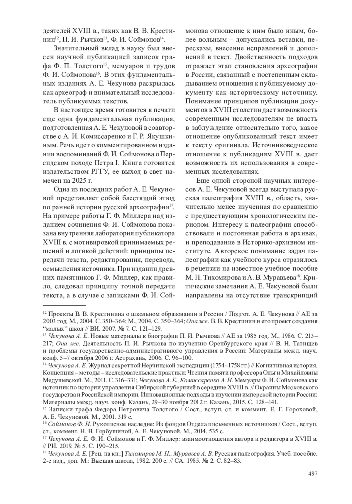 КОМОЧЕВ Н. А. АНТОНИНА ЕФИМОВНА ЧЕКУНОВА (1938–2021) // АРХЕОГРАФИЧЕСКИЙ ЕЖЕГОДНИК. 2024. ТОМ 1