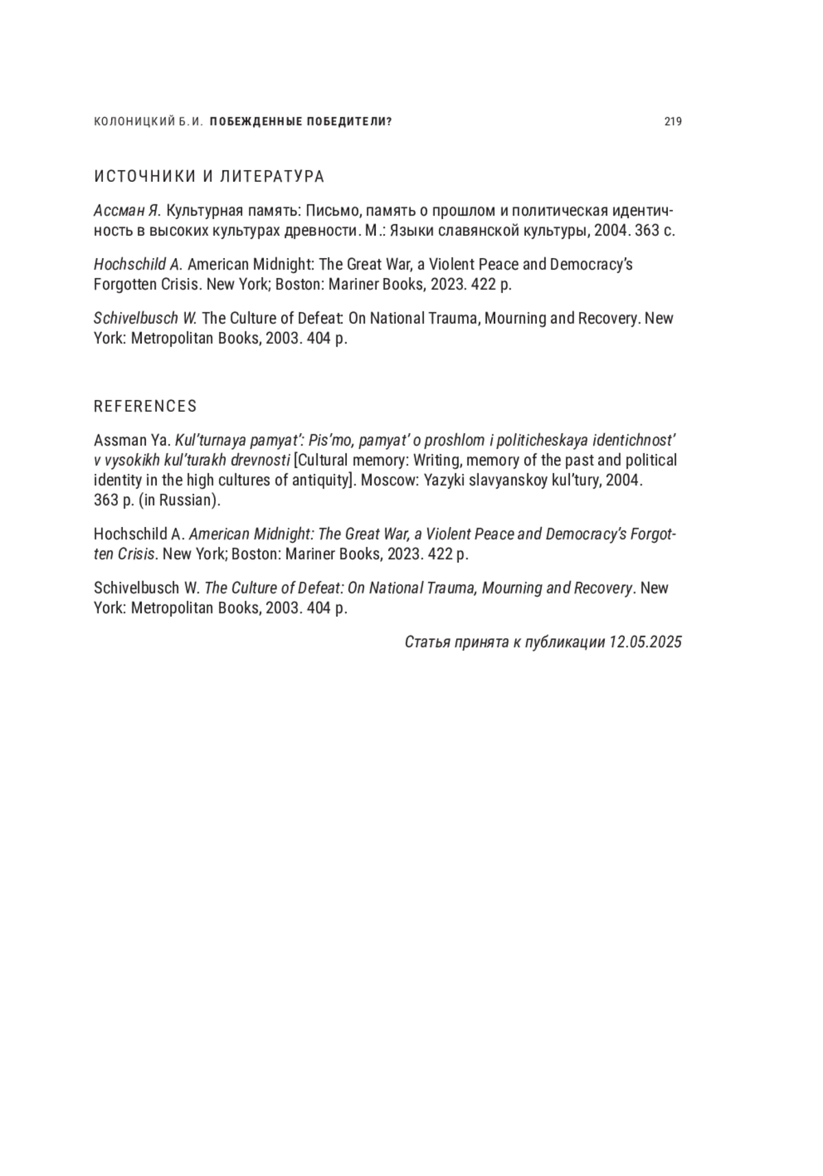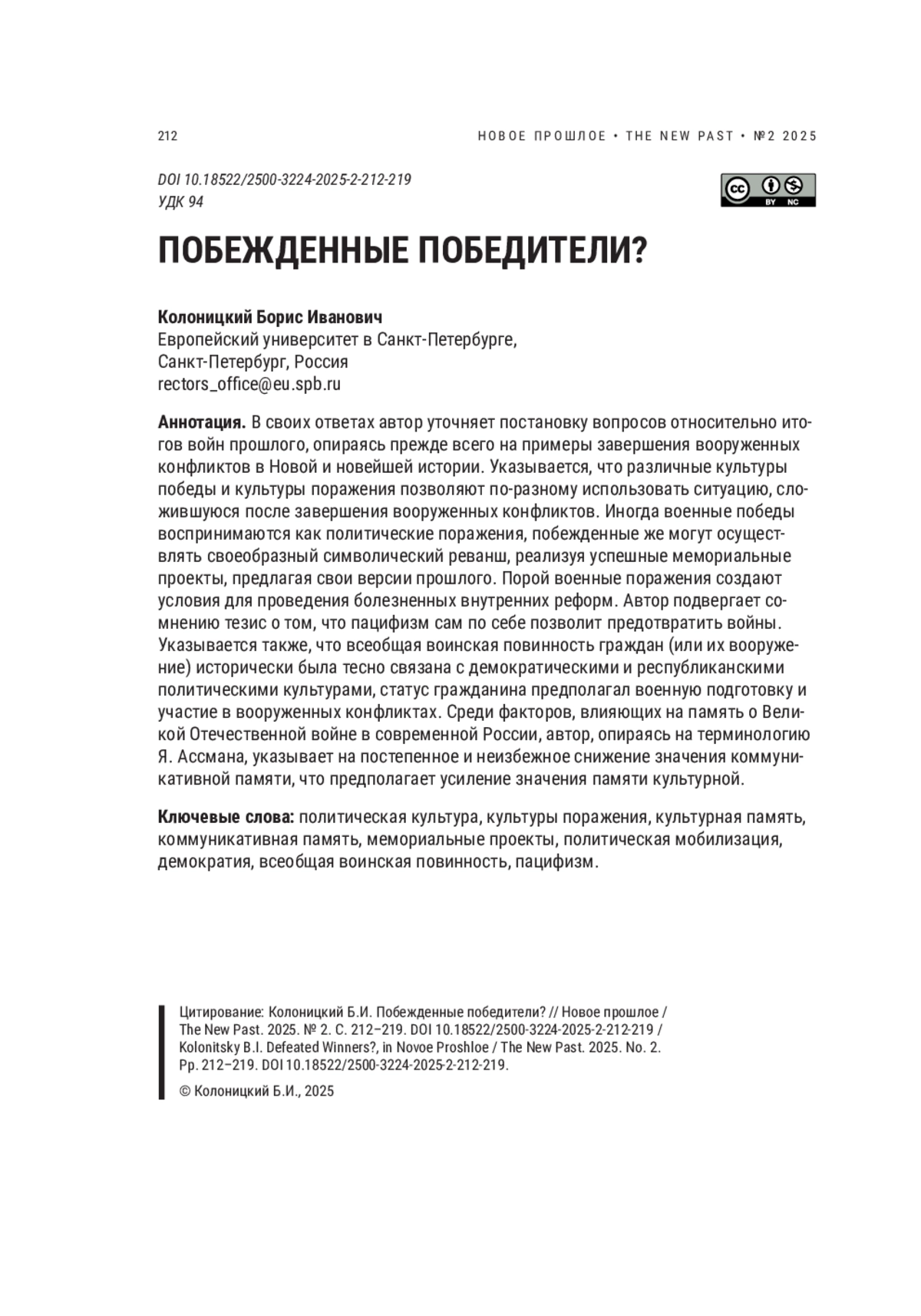 КОЛОНИЦКИЙ Б. И. ПОБЕЖДЕННЫЕ ПОБЕДИТЕЛИ? // НОВОЕ ПРОШЛОЕ. 2025. № 2