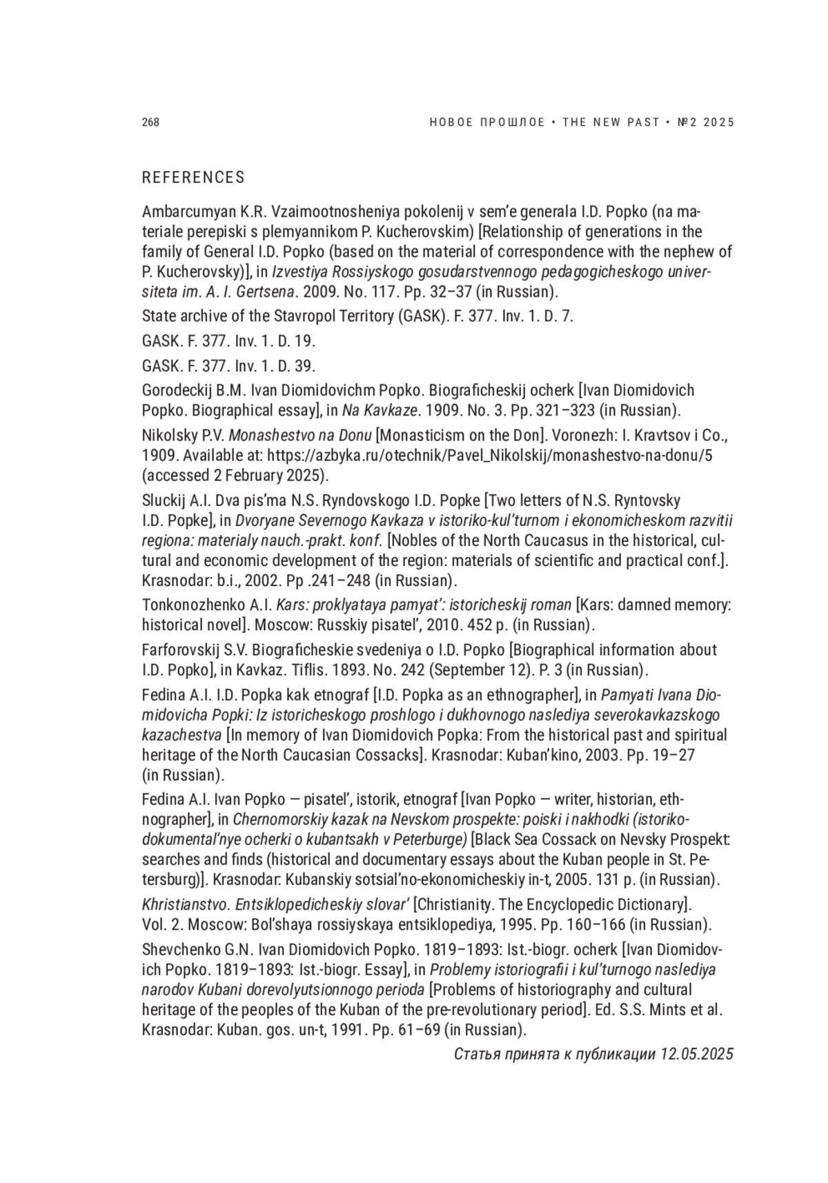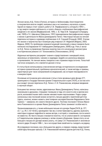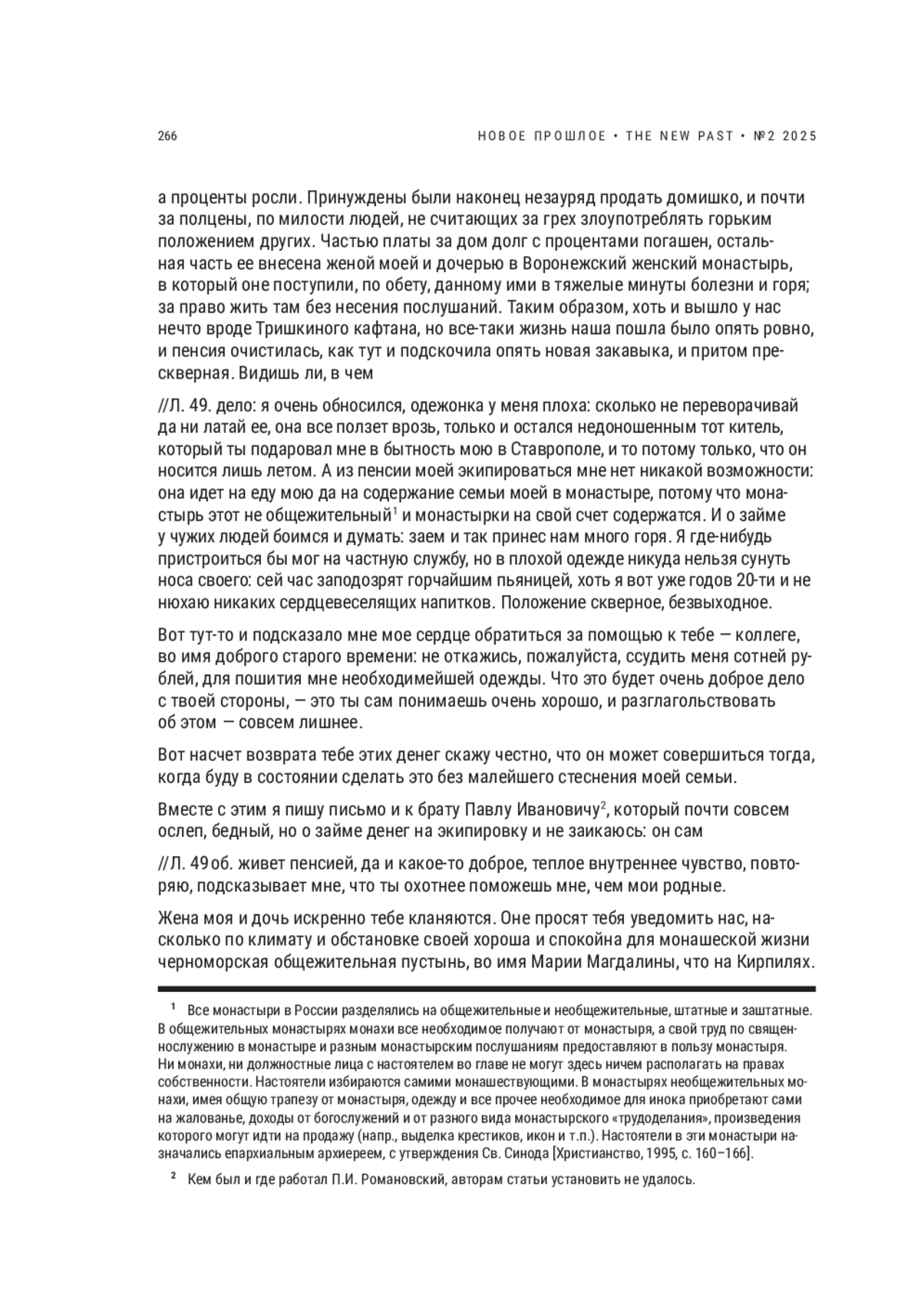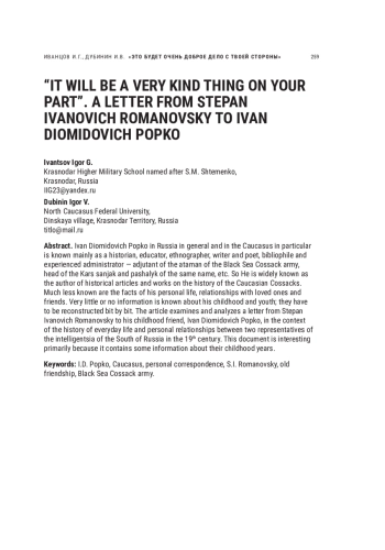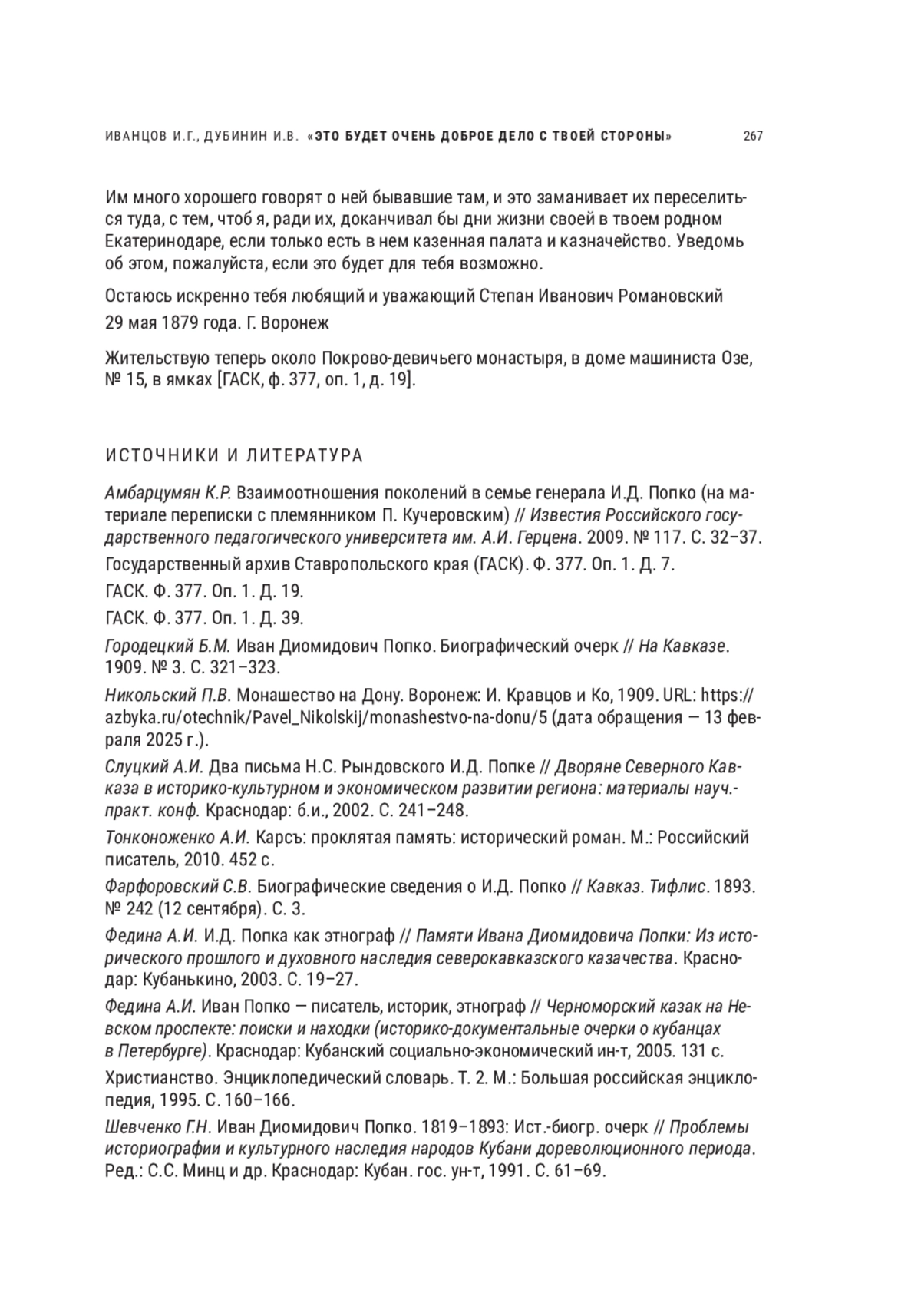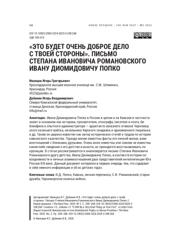 ИВАНЦОВ И. Г., ДУБИНИН И. В. «ЭТО БУДЕТ ОЧЕНЬ ДОБРОЕ ДЕЛО С ТВОЕЙ СТОРОНЫ». ПИСЬМО СТЕПАНА ИВАНОВИЧА РОМАНОВСКОГО ИВАНУ ДИОМИДОВИЧУ ПОПКО // НОВОЕ ПРОШЛОЕ. 2025. № 2