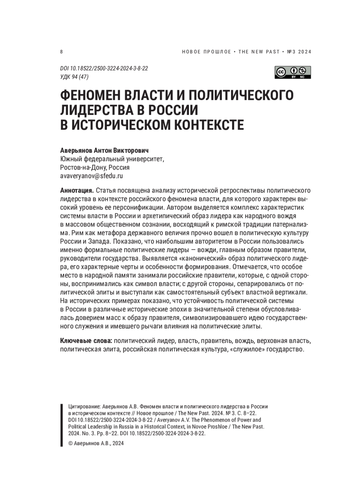 Статья посвящена анализу исторической ретроспективы политического лидерства в контексте российского феномена власти, для которого характерен высокий уровень ее персонификации. Автором выделяется комплекс характеристик системы власти в России и архетипический образ лидера как народного вождя в массовом общественном сознании, восходящий к римской традиции патернализма. Рим как метафора державного величия прочно вошел в политическую культуру России и Запада. Показано, что наибольшим авторитетом в России пользовались именно формальные политические лидеры — вожди, главным образом правители, руководители государства. Выявляется «канонический» образ политического лидера, его характерные черты и особенности формирования. Отмечается, что особое место в народной памяти занимали российские правители, которые, с одной стороны, воспринимались как символ власти; с другой стороны, сепарировались от политической элиты и выступали как самостоятельный субъект властной вертикали. На исторических примерах показано, что устойчивость политической системы в России в различные исторические эпохи в значительной степени обусловливалась доверием масс к образу правителя, символизировавшего идею государственного служения и имевшего рычаги влияния на политические элиты