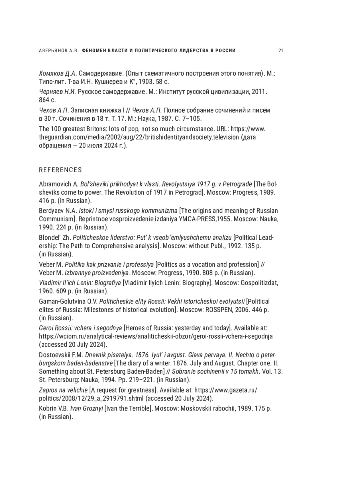 22. Гаман-Голутвина О.В. Политические элиты России: Вехи исторической эволюции. М.: РОССПЭН, 2006. 446 с. EDN: QOFXIN
