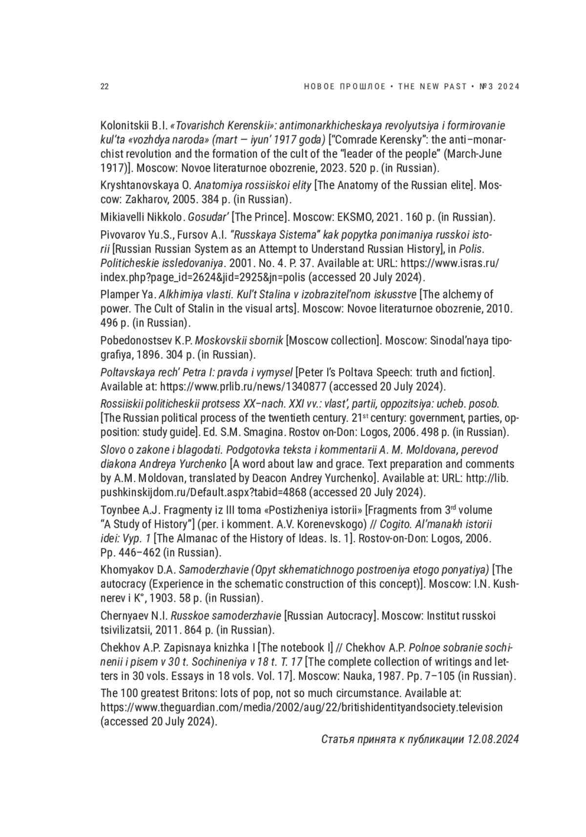 12. Пивоваров Ю.С., Фурсов А.И. “Русская Система” как попытка понимания русской истории // Полис. Политические исследования. 2001. № 4. С. 37. URL: https://www.isras.ru/index.php?page_id=2624&jid=2925&jn=polis (дата обращения - 20 июля 2024 г.). EDN: ESCUBR