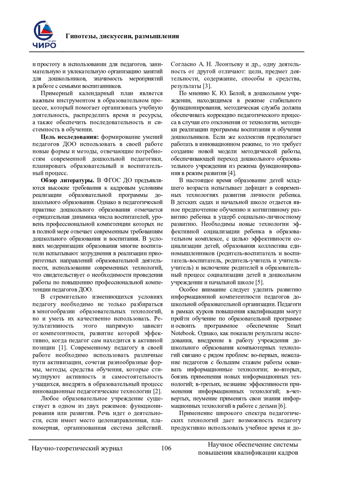 1. Ничипоренко, Л. К. Модель организации работы педагогического коллектива ДОО по применению современных образовательных технологий с использованием чат-бота / Л. К. Ничипоренко, Р. И. Яфизова. - Текст: непосредственный // Ученые записки Забайкальского государственного университета. - 2022. - Т. 17, № 2. - С. 102-112. EDN: RATWSE