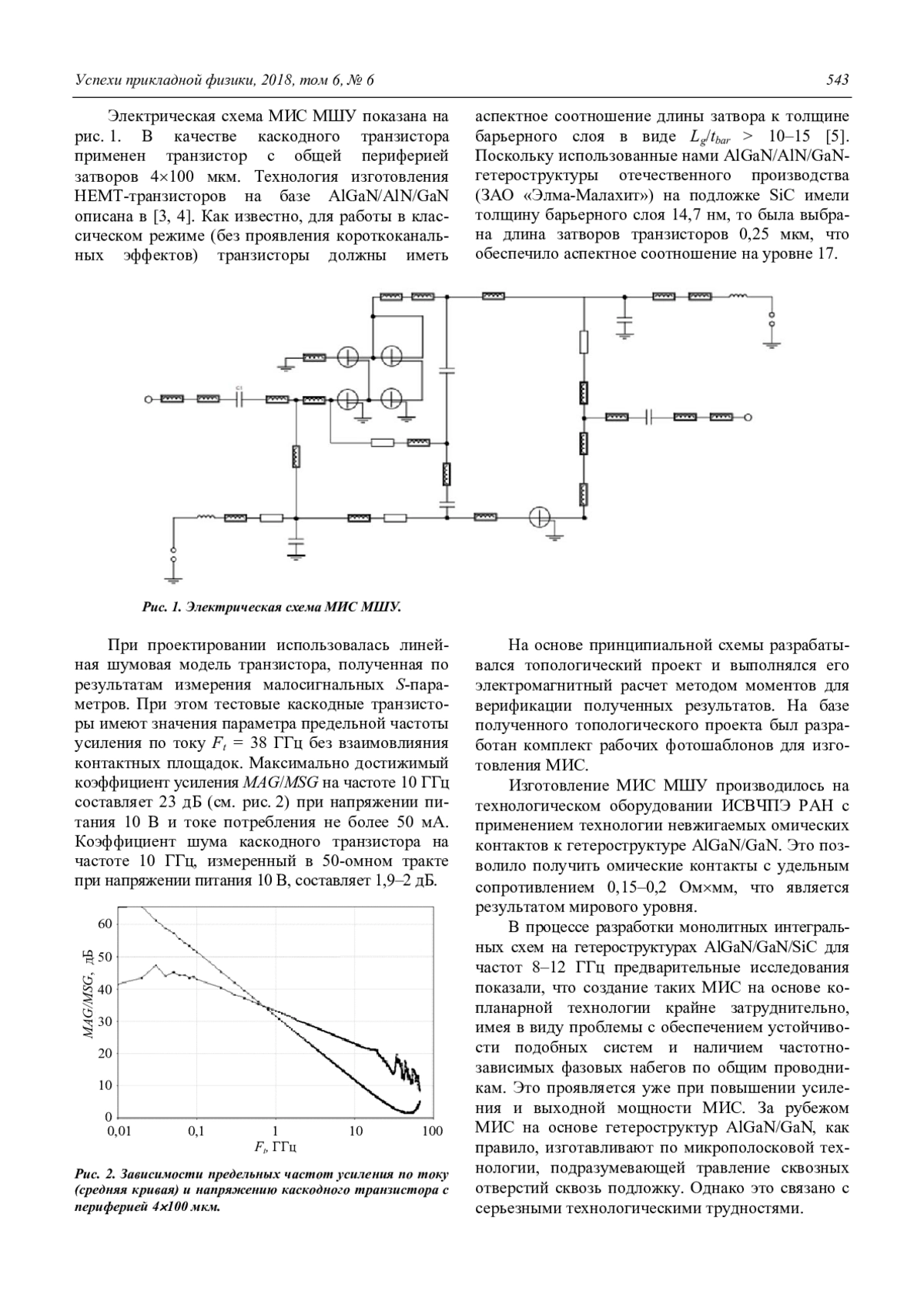 S. A. Gamkrelidze, V. K. Ilkov, A. P. Lisitskii, and Yu. N. Saveliev Monolithic integrated circuit of the X-band low noise amplifier based on the Al-GaN/AlN/GaN HEMT-transistor with the SiC substrate 542