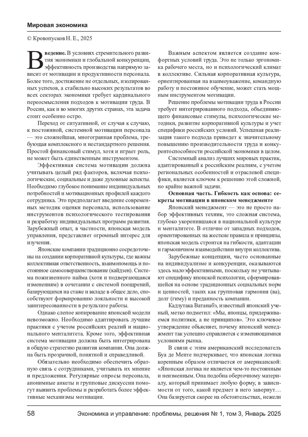 Японский менеджмент - сложная система, основанная на национальной культуре и менталитете. Эта модель отличается от западных гибкостью, адаптацией и гармоничным взаимодействием внутри коллектива. Ключевые элементы мотивации в японском менеджменте: сильная корпоративная культура, пожизненный найм, система повышения по заслугам, коллективная ответственность, вознаграждение, учитывающее долгосрочную перспективу. Группизм является ключевым фактором успеха предприятий, формируя чувство принадлежности к группе и коллективную ответственность. Взаимоотношения по вертикали в японской культуре основаны на власти и авторитете, где старшие наделяются властью и становятся авторитетами благодаря опыту и статусу. Культура страны ориентирована на коллективизм, где группа становится центром жизни и формирует ценности, установки и поведение своих членов. Японский менеджмент отличается от западных моделей уникальным подходом к управлению человеческими ресурсами, основанным на доверии, уважении и поддержке.