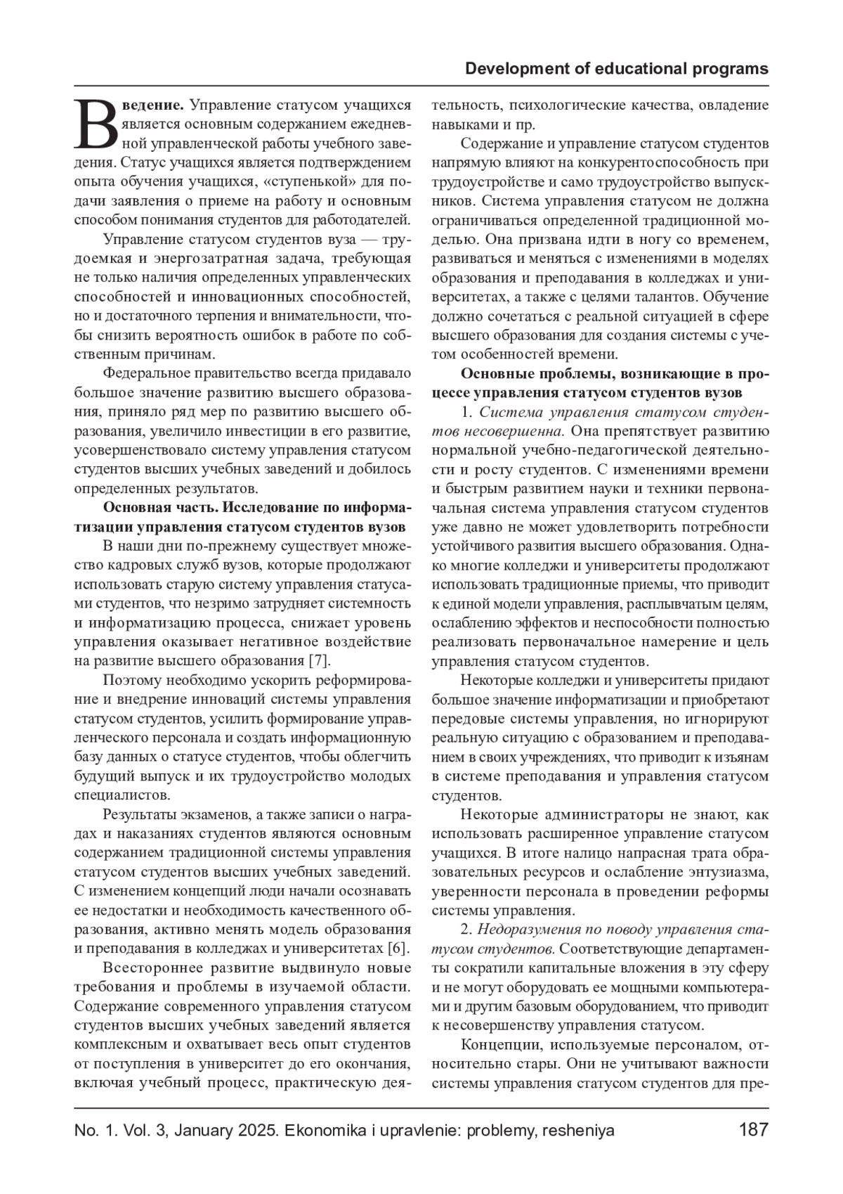 Управление статусом учащихся является основным содержанием ежедневной управленческой работы учебного заведения. Статус учащихся является подтверждением опыта обучения учащихся, «ступенькой» для подачи заявления о приеме на работу и основным способом понимания студентов для работодателей.