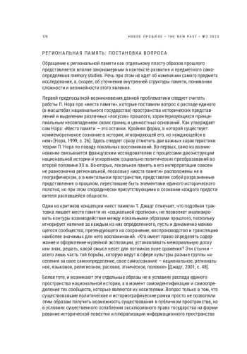7. Нора П. Между памятью и историей. Проблематика мест // Франция-Память. СПб.: Изд-во Санкт-Петербургского университета, 1999. С. 21-50.