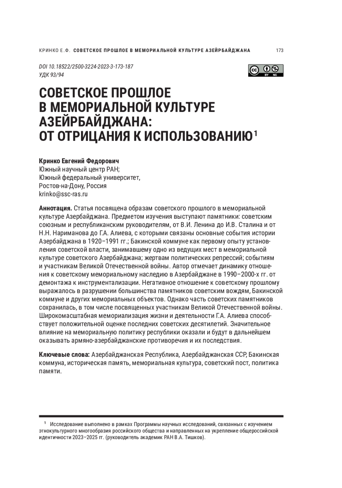 22. Токарев С.С. Отрицание, встраивание, постепенное забвение: государственные стратегии по отношению к советскому наследию в Грузии, Армении, Азербайджане // Вестник МГИМО-Университета. 2017. № 5 (56). С. 66-80. EDN: ZTWOVN