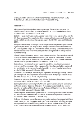 1. Активисты сочли реабилитацию карачаевцев неполной. URL: https://www.kavkaz-uzel.org/articles/335071/ (дата обращения - 13 октября 2022 г.).