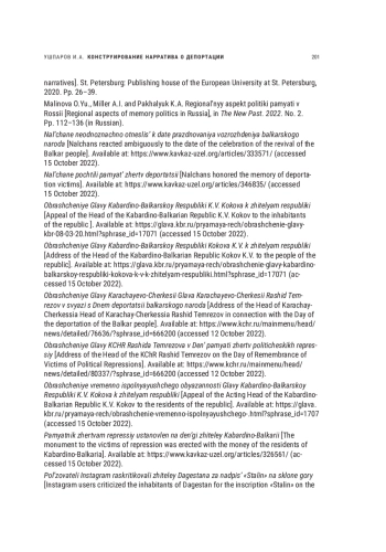 21. Памятник жертвам репрессий установлен на деньги жителей Кабардино-Балкарии. URL: https://www.kavkaz-uzel.org/articles/326561/ (дата обращения - 15 октября 2022 г.).