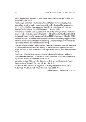 14. Нальчане неоднозначно отнеслись к дате празднования возрождения балкарского народа. URL: https://www.kavkaz-uzel.org/articles/333571/ (дата обращения - 15 октября 2022 г.).