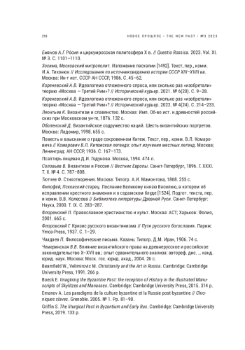 6. Кореневский А.В. Идеологема отложенного спроса, или сколько раз “изобретали” теорию “Москва - Третий Рим”? // Исторический курьер. 2021. № 6 (20). С. 9- 28; 2022. № 4 (24). С. 214- 233.