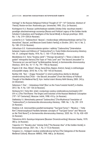 22. Страхов А. Б. Историософские параллели концепций “Царьград Тырнов” и “Москва - Третий Рим” // Герменевтика древнерусской литературы. 2020. № 19. С. 430-439. EDN: NTQLOB