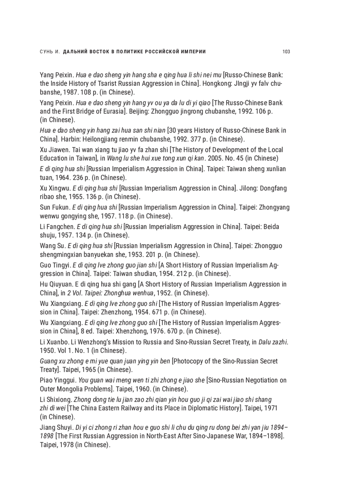 49. 李世雄 (Ли Шисюн). 中東鐵路建造之前因後果及其在外交史上之地位 (Причины и последствия строительства КВЖД и ее место в дипломатической истории): магистерская диссертация университета Чжэнчжи. Тайбэй, 1971.