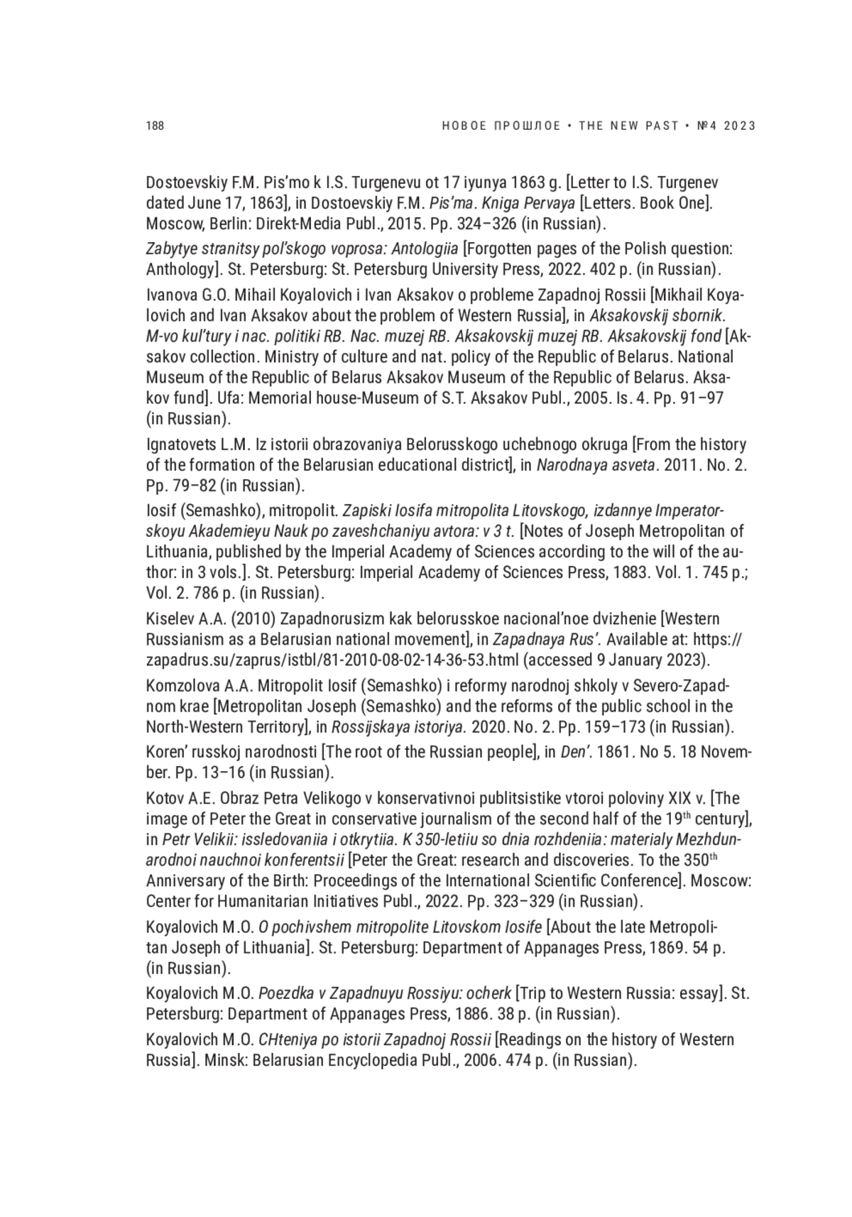 29. Kotov A.E. West-Russian Publicists of the 19th Century // Novoe Proshloe / The New Past. 2022. № 2. Pp. 60-76. EDN: KZVFKV
