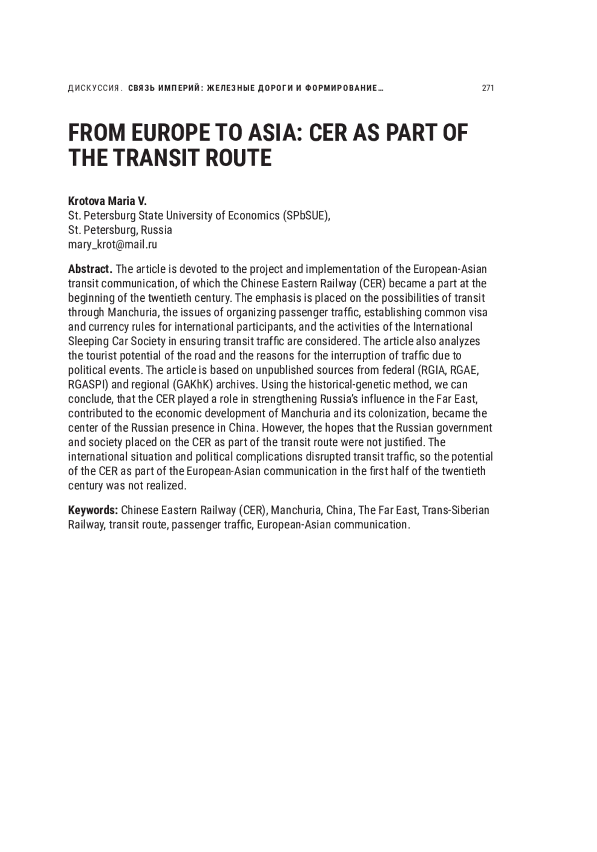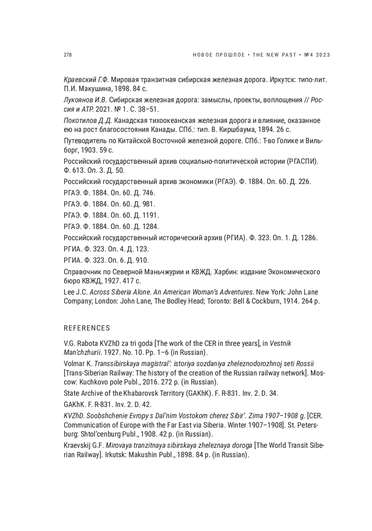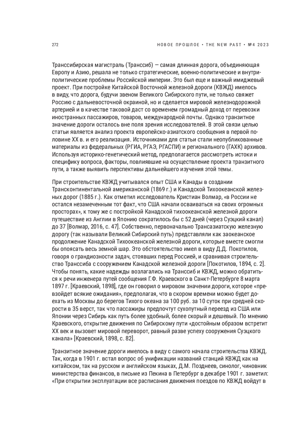 КРОТОВА М. В. ИЗ ЕВРОПЫ В АЗИЮ: КВЖД КАК ЧАСТЬ ТРАНЗИТНОГО ПУТИ // НОВОЕ ПРОШЛОЕ. 2023. № 4