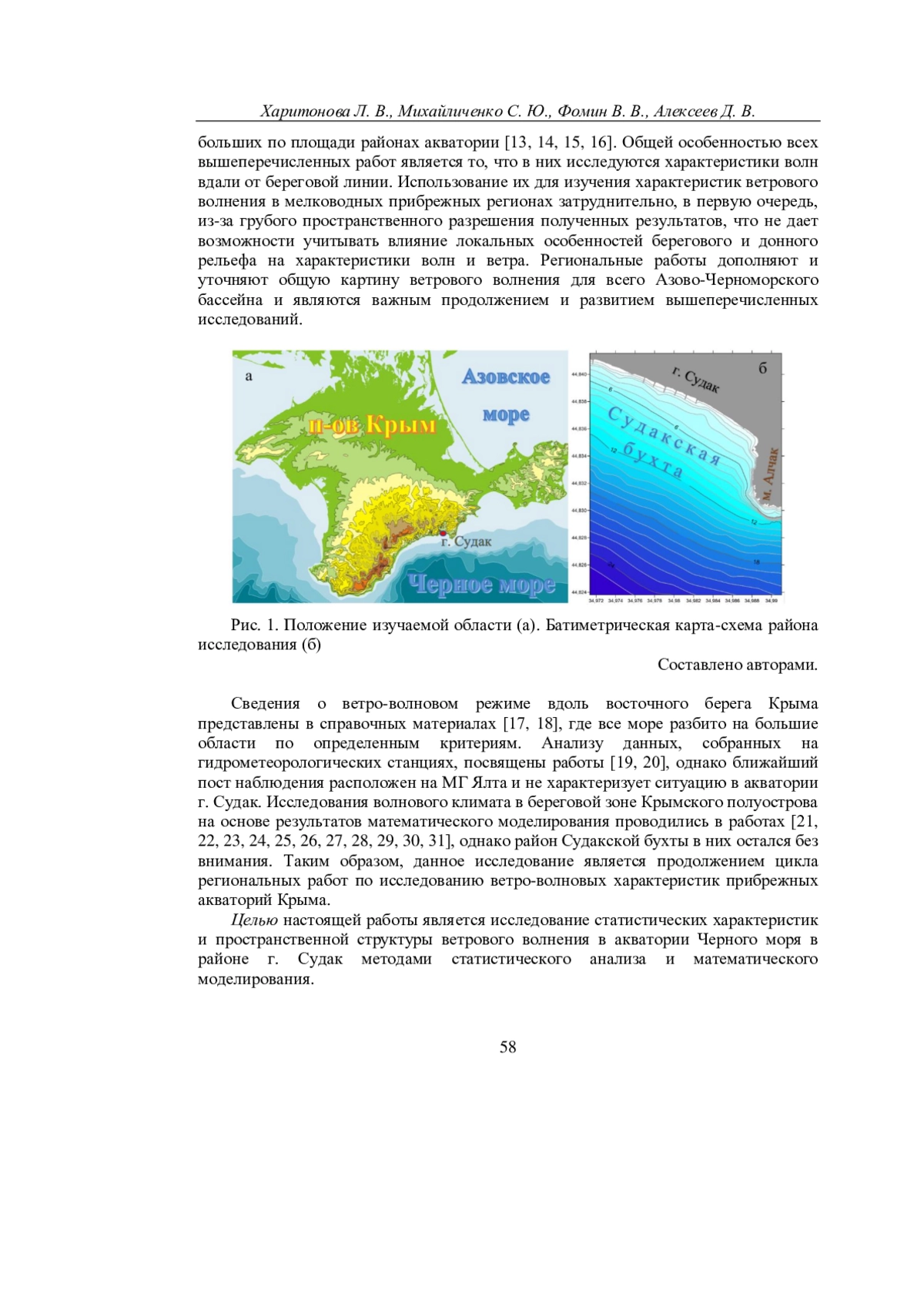 26. Харитонова Л.В., Алексеев Д.В., Фомин В.В. Комплексное исследование волновых и литодинамических процессов в береговой зоне п. Морское (Восточный Крым) // Экологическая безопасность прибрежной и шельфовой зон моря. 2021. № 3. С. 5-22. DOI: 10.22449/2413-5577-2021-3-5-22.