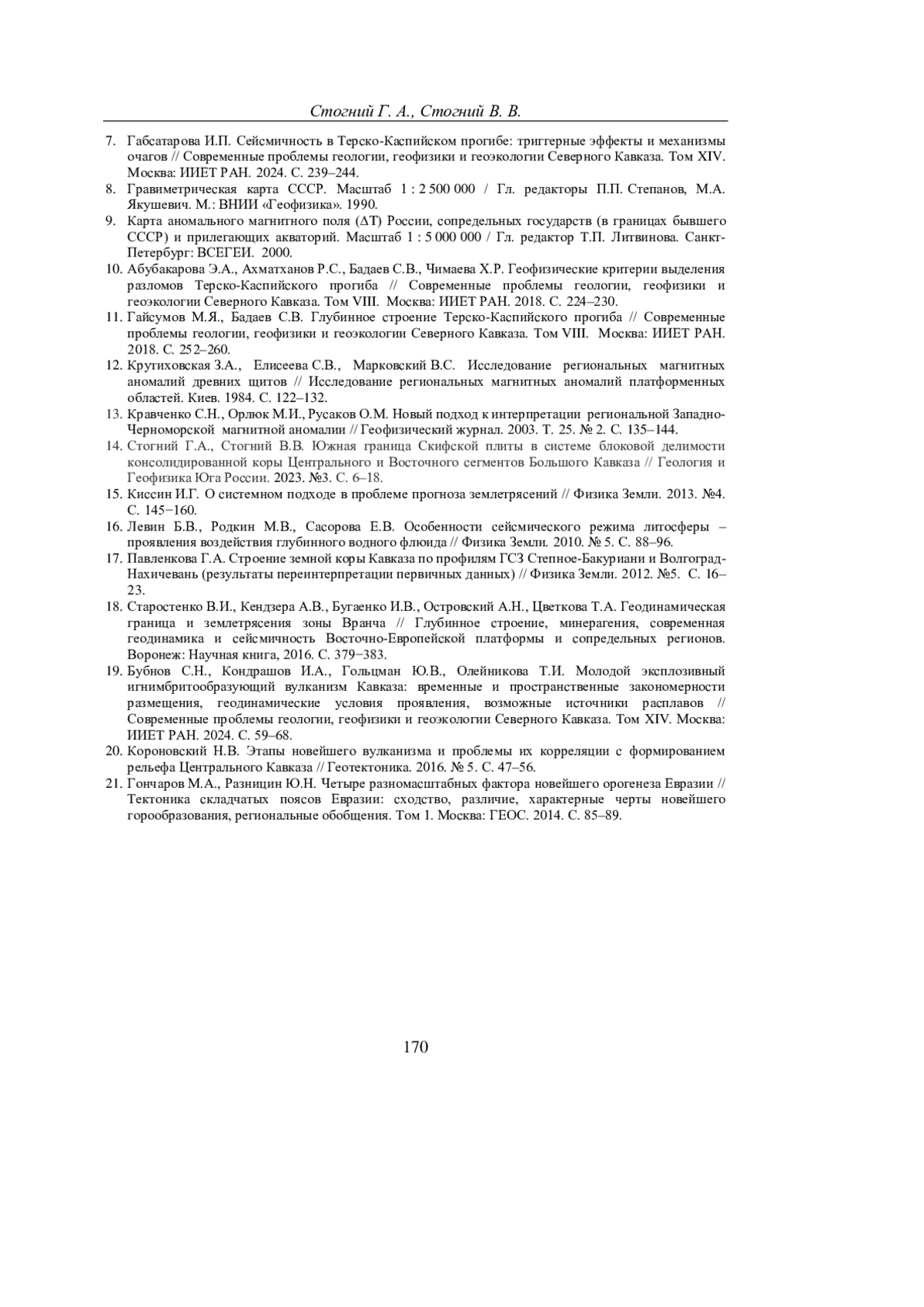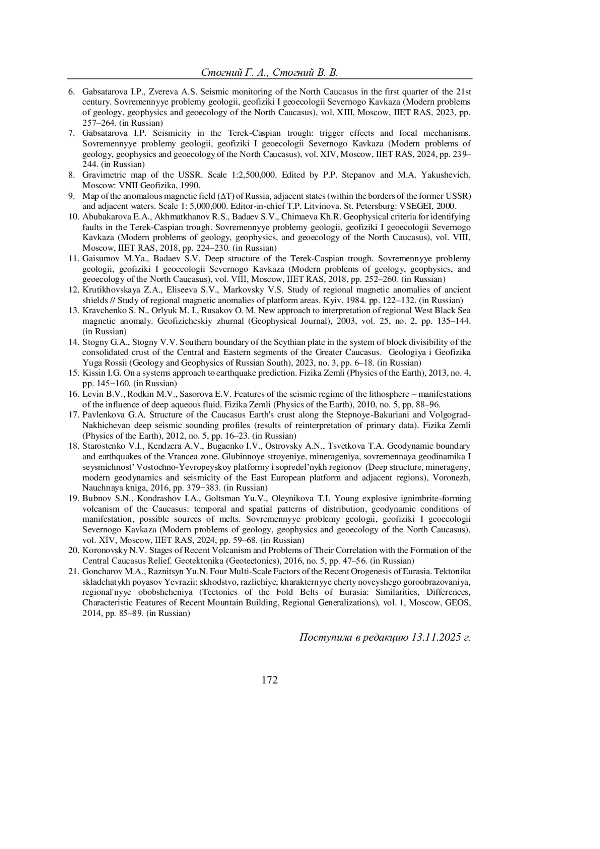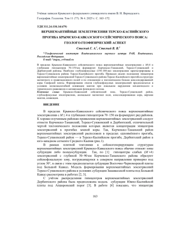 СТОГНИЙ Г. А., СТОГНИЙ В. В. ВЕРХНЕМАНТИЙНЫЕ ЗЕМЛЕТРЯСЕНИЯ ТЕРСКО-КАСПИЙСКОГО ПРОГИБА КРЫМСКО-КАВКАЗСКОГО СЕЙСМИЧЕСКОГО ПОЯСА: ГЕОЛОГО-ГЕОФИЗИЧЕСКИЙ АСПЕКТ // УЧЕНЫЕ ЗАПИСКИ КРЫМСКОГО ФЕДЕРАЛЬНОГО УНИВЕРСИТЕТА ИМЕНИ В. И. ВЕРНАДСКОГО. ГЕОГРАФИЯ. ГЕОЛОГИЯ. 2025. ТОМ 11 (77). № 4