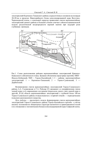 Ключевые фразы: крымско-кавказский сейсмический пояс, терско-сунженский район, глубокофокусные землетрясения, аномальное магнитное поле, консолидированная кора, верхняя мантия, конвекция