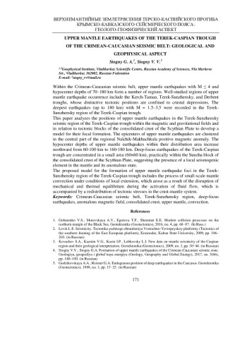 Статья: ВЕРХНЕМАНТИЙНЫЕ ЗЕМЛЕТРЯСЕНИЯ ТЕРСКО-КАСПИЙСКОГО ПРОГИБА КРЫМСКО-КАВКАЗСКОГО СЕЙСМИЧЕСКОГО ПОЯСА: ГЕОЛОГО-ГЕОФИЗИЧЕСКИЙ АСПЕКТ (2025)